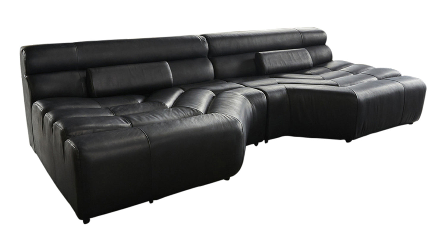 Tiefe Nähte in der Sitz- und Rückenfläche verleihen dem Big Sofa eine schlauchartige und sportliche Optik. Der Bezug aus hochwertigem Leder in einem angesagten cognacton betont die sportliche Eleganz des Sofas gelungen.
