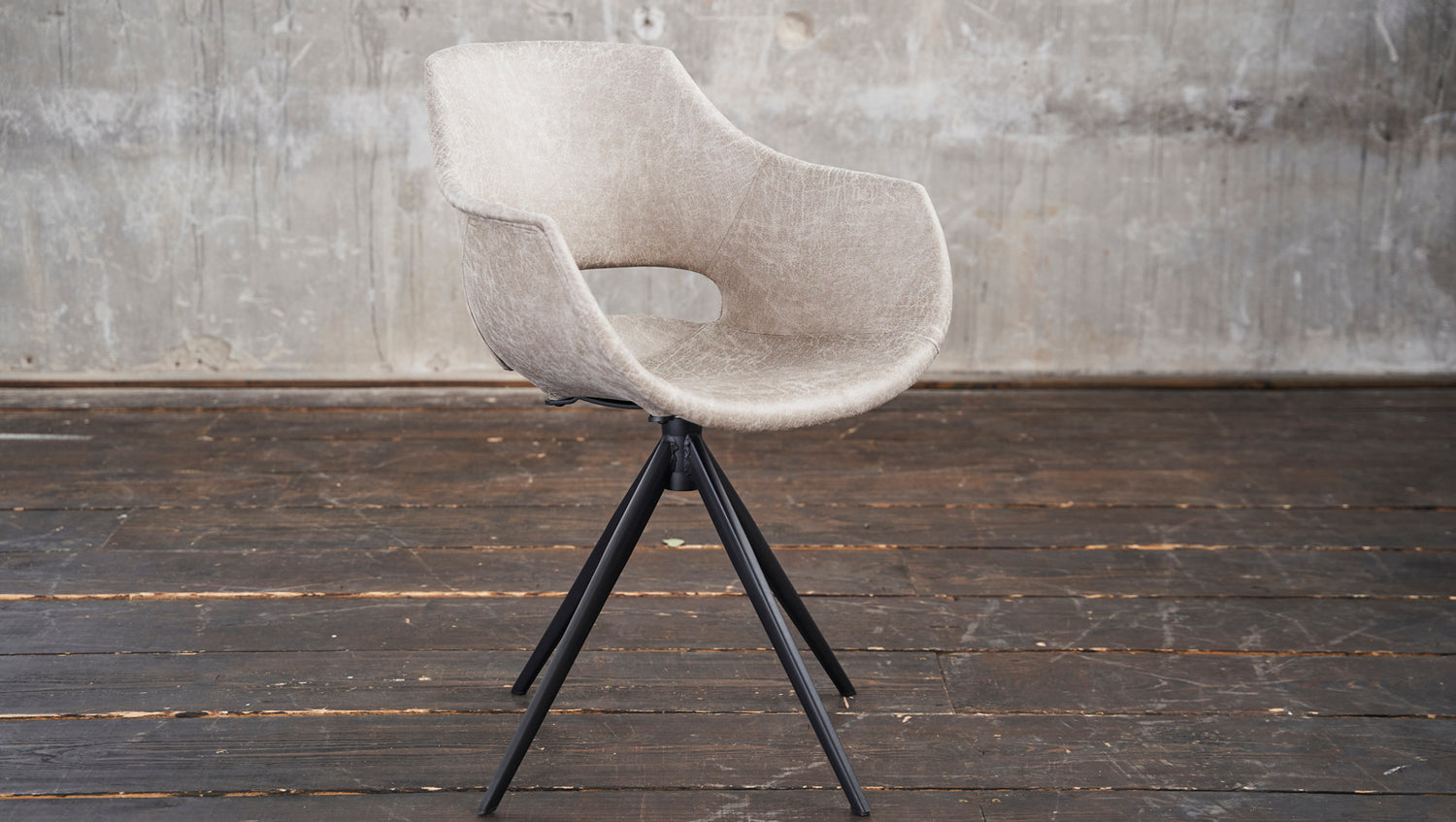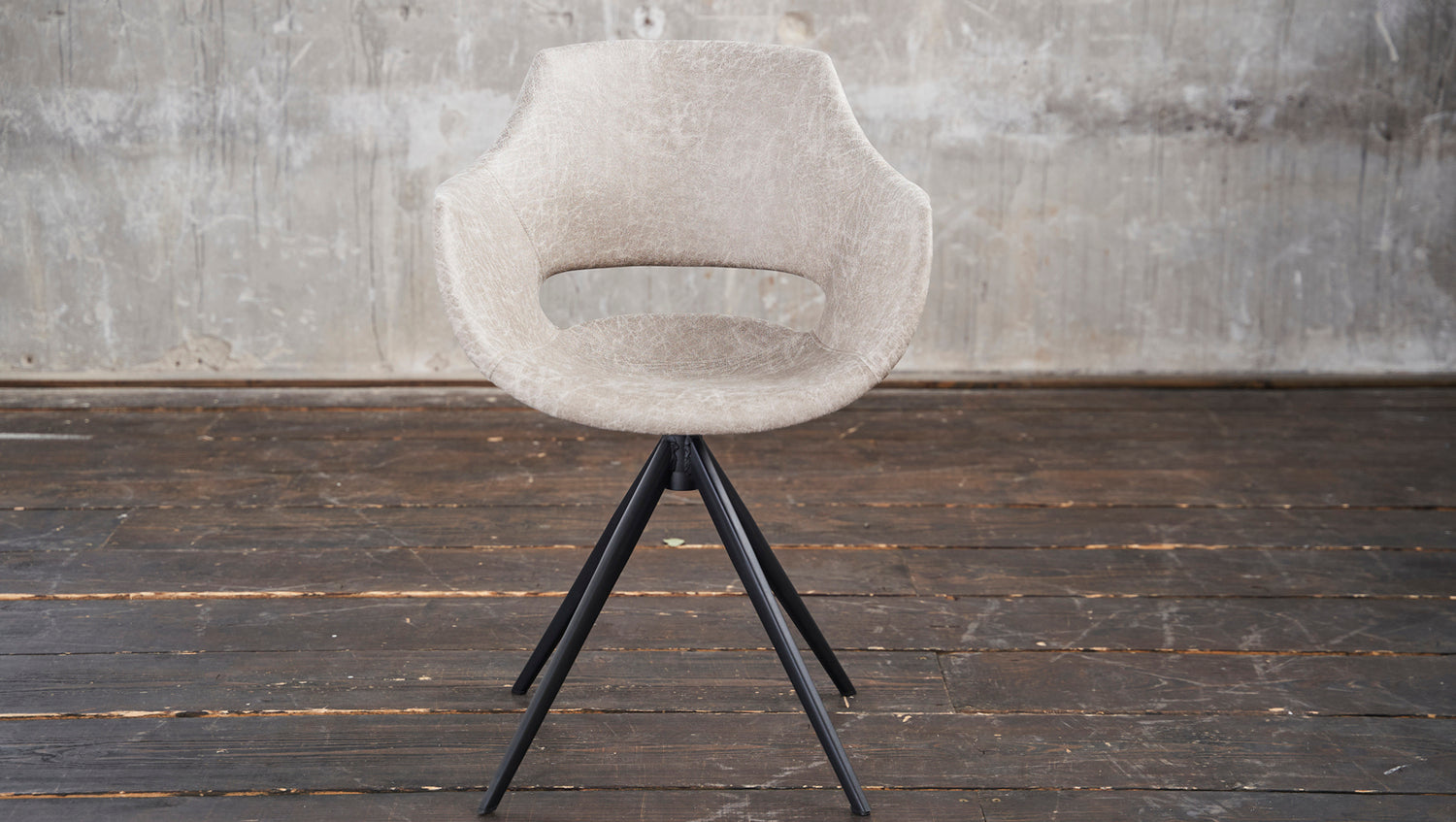 Bei diesen Stühlen handelt es sich um B-Ware aus Kundenrücksendungen, die gewisse kleinere Mängel aufweisen und daher von uns zu einem reduzierten Preis angeboten werden. Mögliche Mängel sind: Kratzer am Gestell, Druckstellen, leichte Verunreinigungen und Farbabweichungen auf der Polsterung sowie Risse im Unterbodenstoff. Bitte schauen Sie sich hierzu die Beispielbilder nach dem Hauptbild an. Der Stuhl ZAJA vereint industrielles und modernes Wohndesign. Hier können Sie sich bequem zurücklehnen und stilvoll speisen. Das Material ist sehr hochwertig verarbeitet und lässt sich problemlos reinigen. Der Stuhl ZAJA eignet sich für praktisch jeden Wohnbereich. Ob nun am Schreibtisch oder im Esszimmer überall macht der Stuhl aufgrund seines modernen Designs eine hervorragende Figur. Hier steht gemütlichen Stunden zum Arbeiten oder für die Freizeit nichts mehr im Wege. Das Highlight des Stuhls ist aber die Drehfunktion, mit der sich die Sitzposition um 360 Grad drehen lässt.