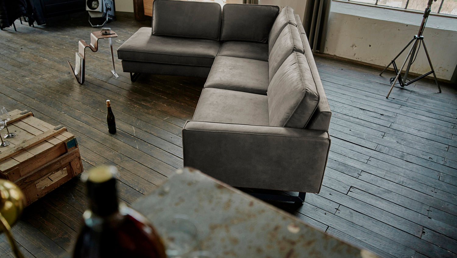 Extreme Robustheit ist durch das massive Holzgestell ebenso gegeben wie eine komfortable und legere Polsterung für ein weiches Sitzvergnügen. Trotz seiner großflächigen Maße lässt sich das Ecksofa in allen Räumlichkeiten flexibel positionieren und stellt damit jederzeit ein optisches Highlight dar.