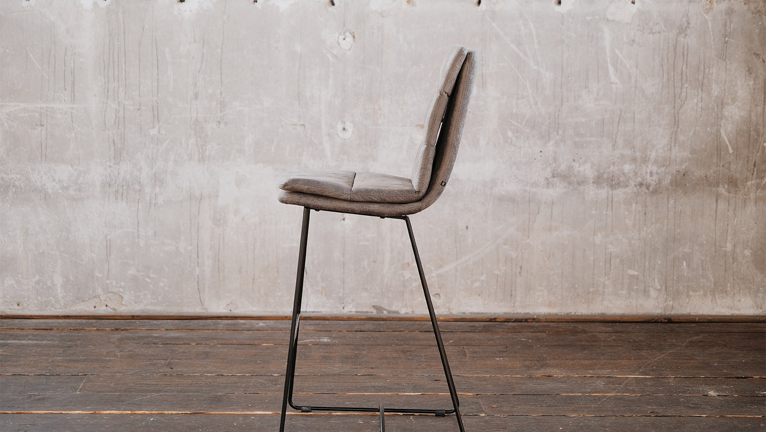 Der KAWOLA Thekenhocker verleiht Ihrem Zuhause eine wohlige Atmosphäre; auf ihm können Sie die Abende gemütlich ausklingen lassen oder mit Ihren Freunden schöne Stunden verleben. Der Tresenstuhl Vince verfügt über eine angenehme und bequeme Polsterung und der Rücken wird durch die hohe Rückenlehne optimal unterstützt und entlastet. Die Fußablage am unteren Gestell ermöglicht ein bequemes Abstellen der Füße. Der Thekenstuhl wurde rundum in dem schönen hellgrauen Stoff überzogen, dessen Rückenlehne 2 Längsabsteppungen aufweist. Die Sitzfläche hingegen ist durchgehend ohne Abnähungen. Das dunkle Gestell des KAWOLA Thekenhocker Vince passt farblich toll zu dem helleren Stoff und bildet zugleich einen schönen Kontrast.