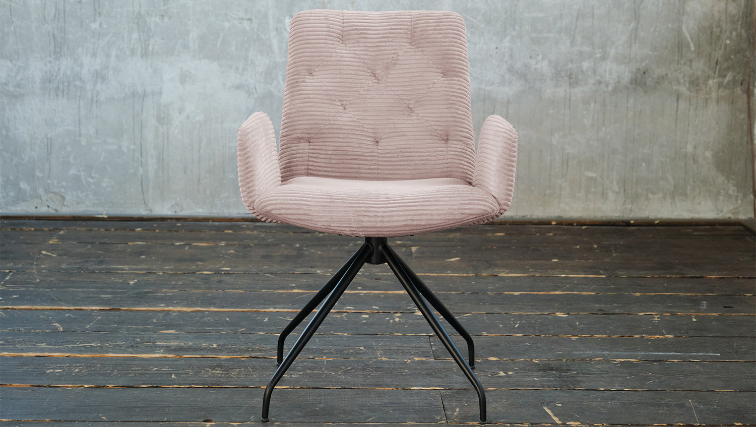 KAWOLA Stuhl NEW CHARME Drehstuhl Esszimmersessel Cord rosa