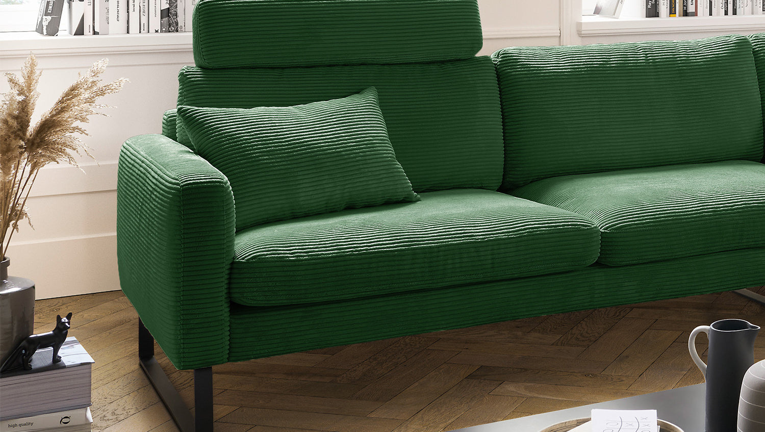 KAWOLA Sofa RICARDA Ecksofa Cord smaragd