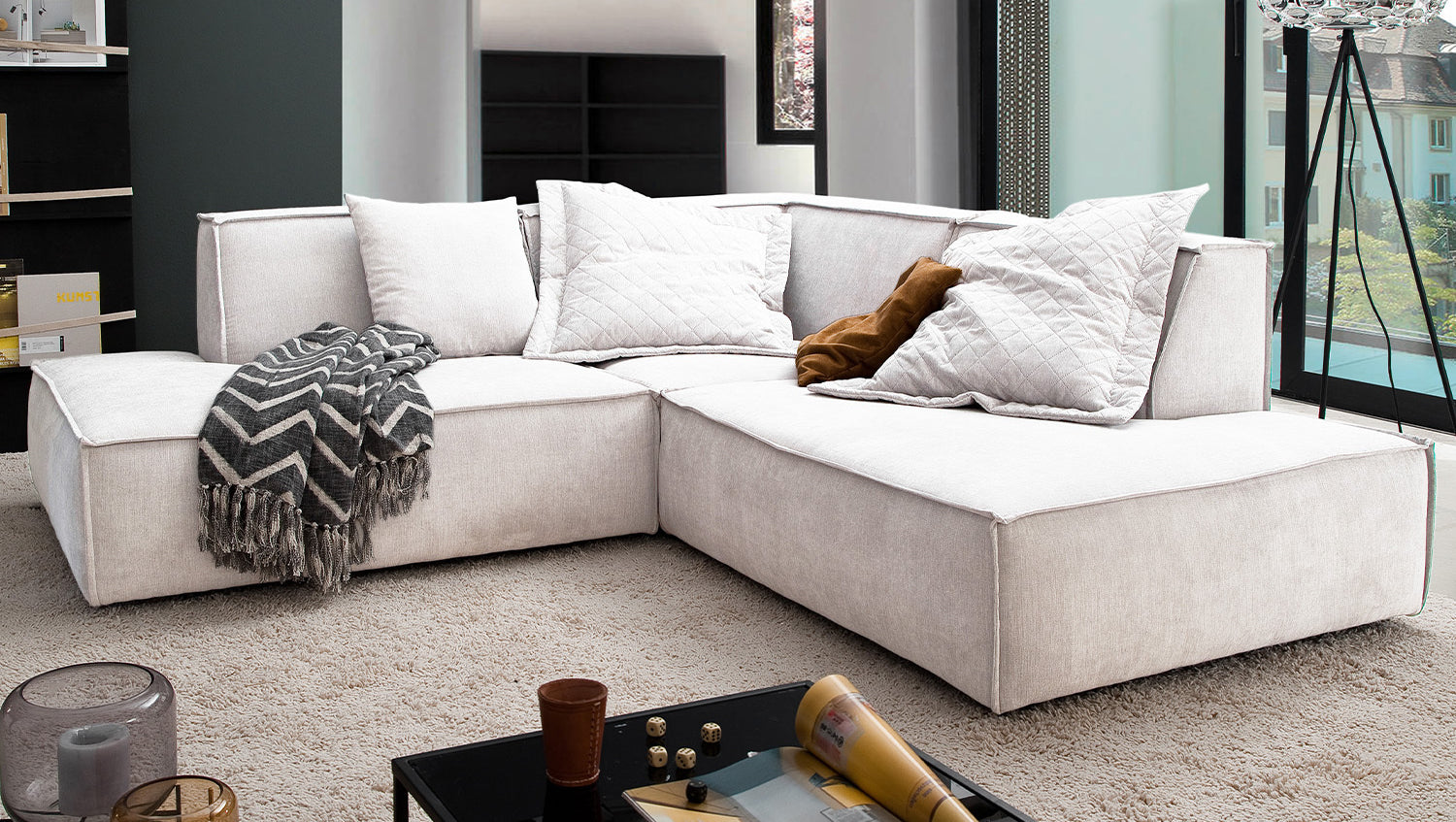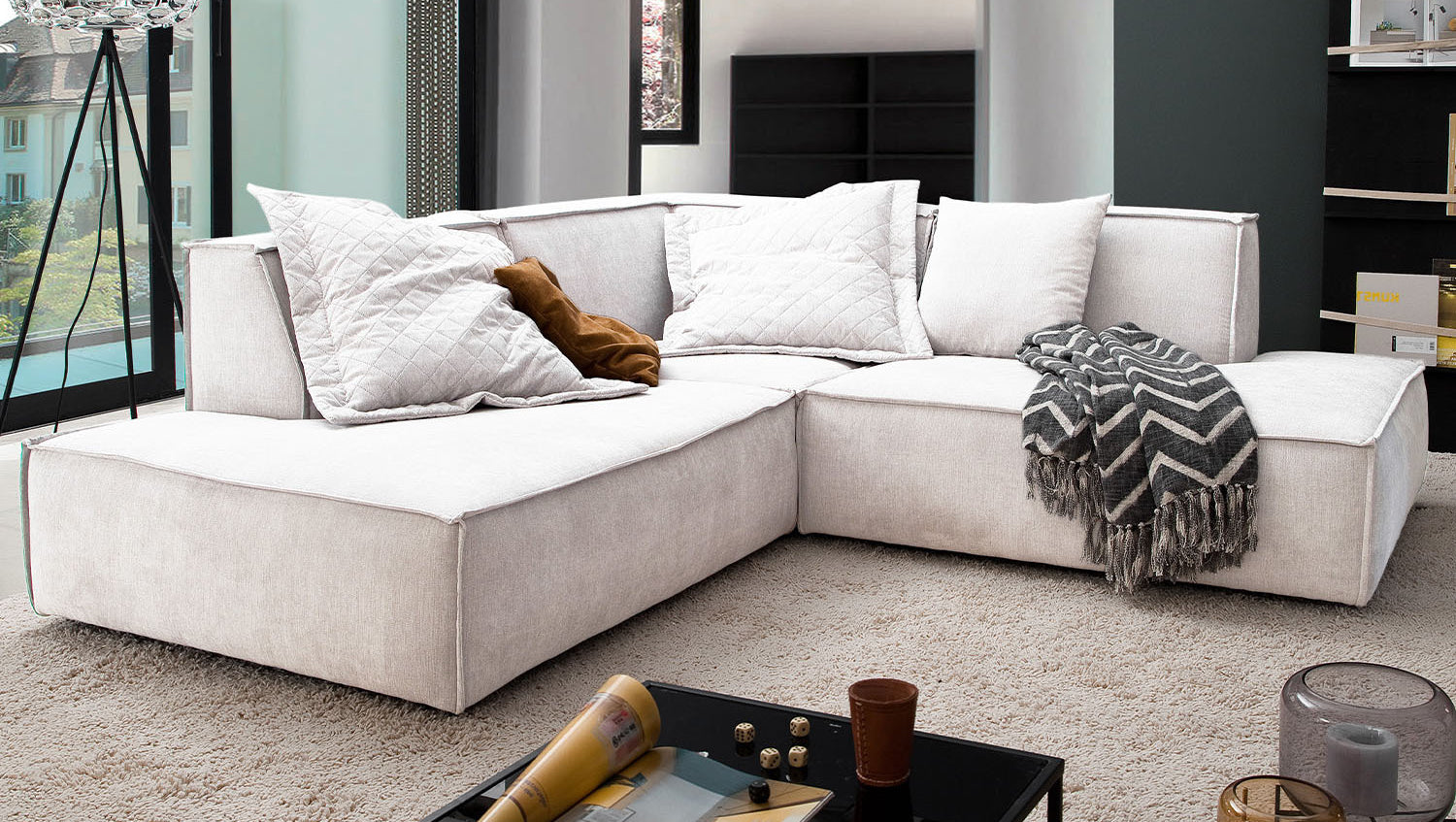 Das KAWOLA Ecksofa SAMU besticht durch seinen hervorragenden Sitzkomfort, der durch den äußerst weichen und legeren Polsteraufbau zustande kommt und zum Verweilen und Entspannen einlädt. Die Polsterung passt sich der Körperform an; Sitzabdrücke sowie Wellenbildung der Bezüge sind warentypisch. Seine moderne und urbane Form verleihen dem Sofa sein unverwechselbares Aussehen und bieten ausreichend Platz, um gemütliche Abende zu verbringen. Mit seinem zeitlosen Design fügt es sich nahtlos in jede Umgebung ein und macht auch frei im Raum stehend eine gute Figur. Wenn Sie Ihrem Wohnzimmer einen außergewöhnlichen Anstrich verleihen wollen, ist das Sofa SAMU definitiv das Richtige für Sie!