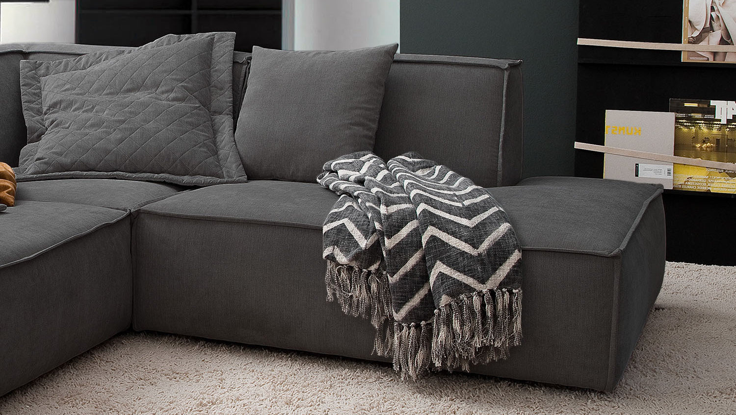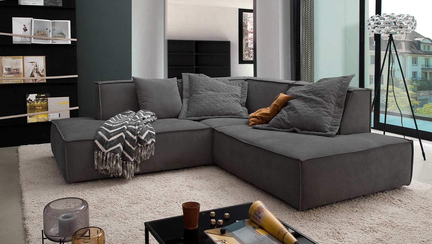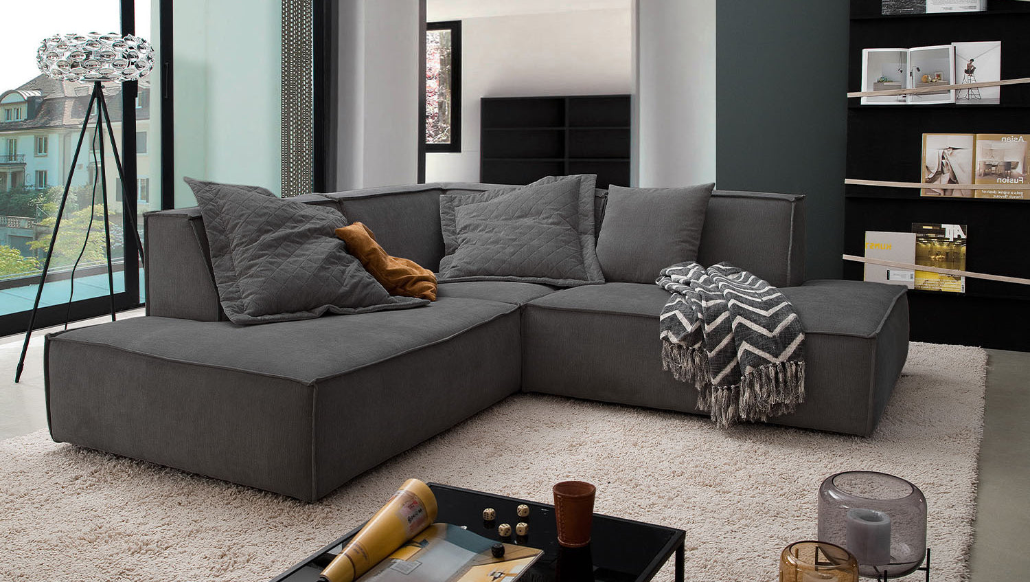 Das KAWOLA Ecksofa SAMU besticht durch seinen hervorragenden Sitzkomfort, der durch den äußerst weichen und legeren Polsteraufbau zustande kommt und zum Verweilen und Entspannen einlädt. Die Polsterung passt sich der Körperform an; Sitzabdrücke sowie Wellenbildung der Bezüge sind warentypisch. Seine moderne und urbane Form verleihen dem Sofa sein unverwechselbares Aussehen und bieten ausreichend Platz, um gemütliche Abende zu verbringen. Mit seinem zeitlosen Design fügt es sich nahtlos in jede Umgebung ein und macht auch frei im Raum stehend eine gute Figur. Wenn Sie Ihrem Wohnzimmer einen außergewöhnlichen Anstrich verleihen wollen, ist das Sofa SAMU definitiv das Richtige für Sie!