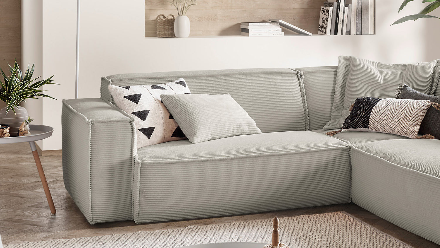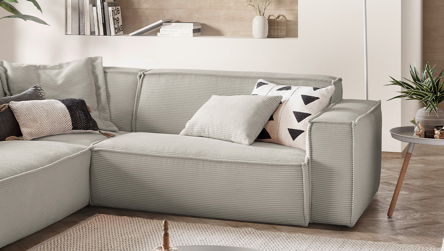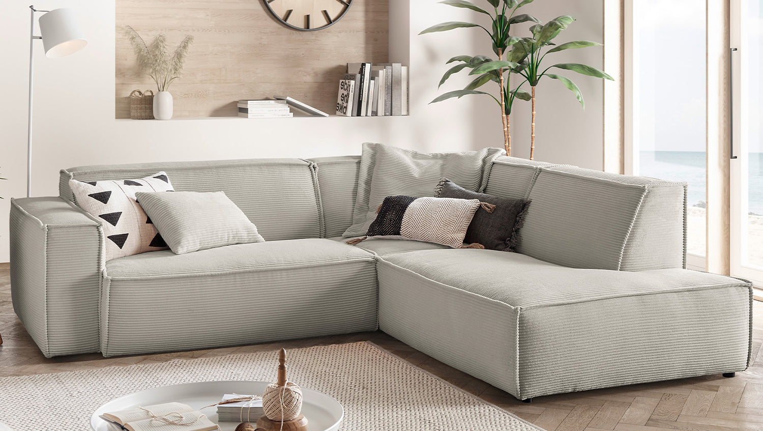KAWOLA Sofa SAMU Ecksofa Cord steingrau