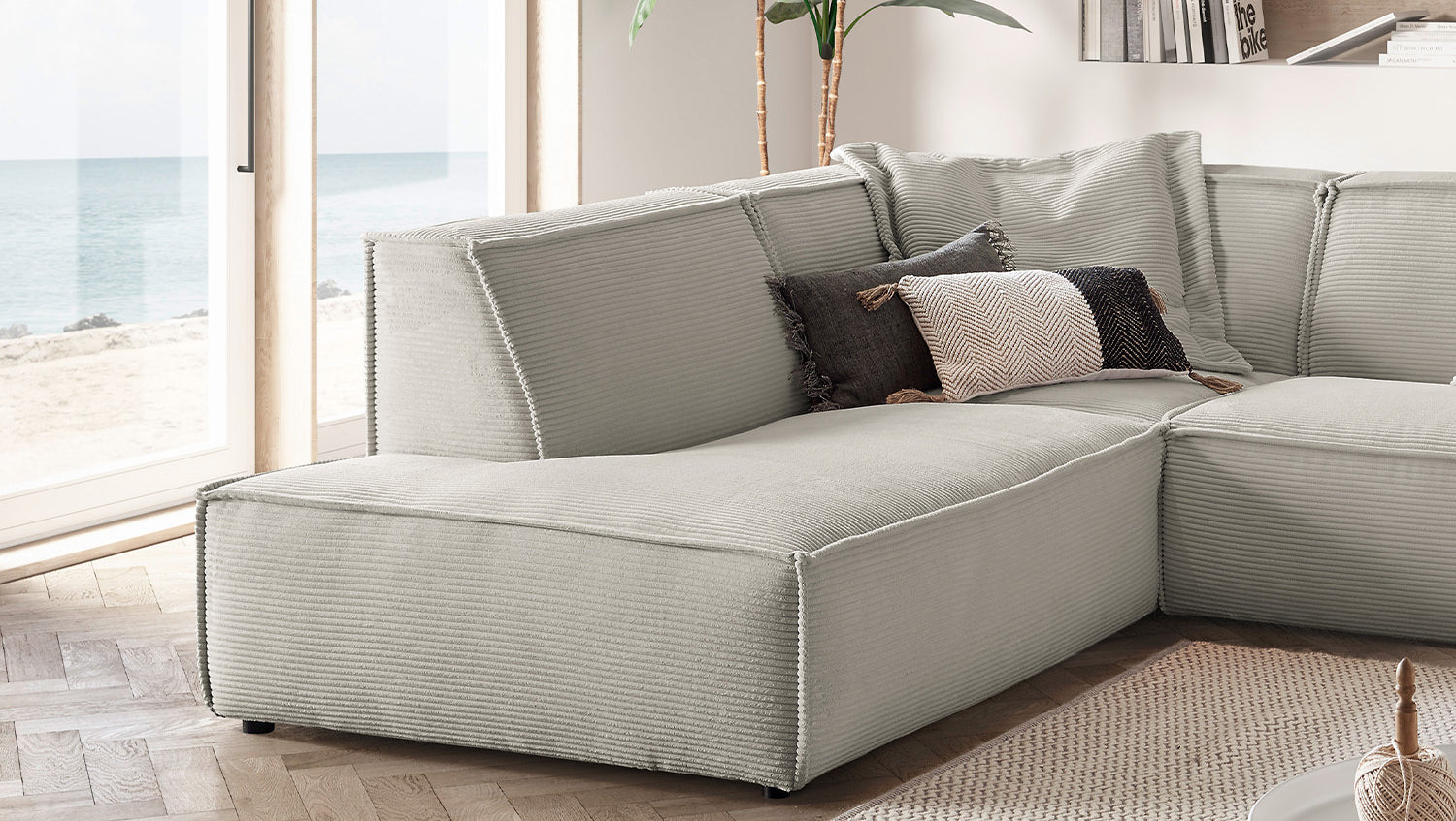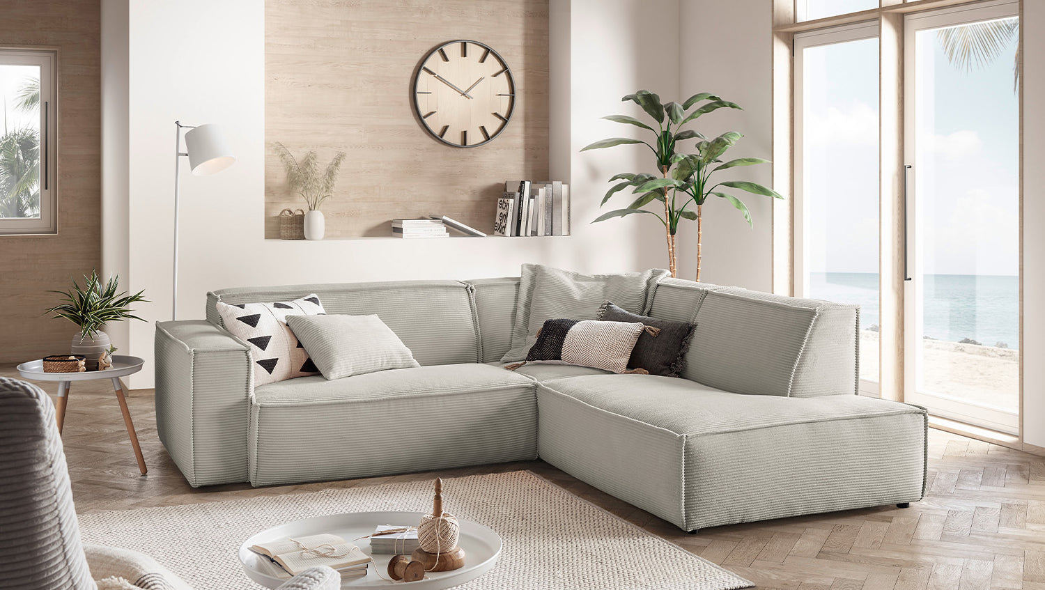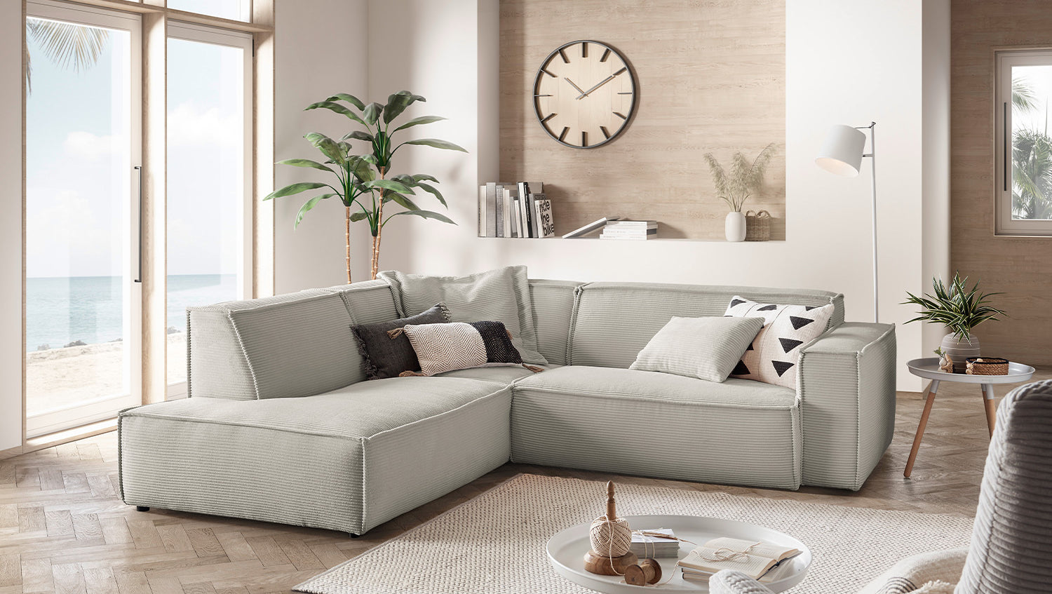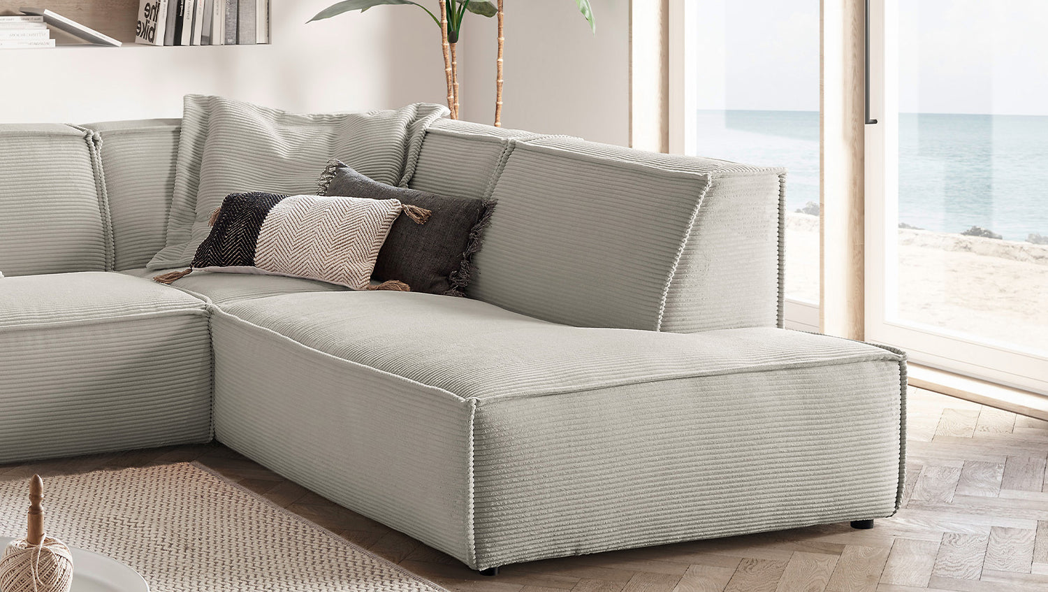 KAWOLA Sofa SAMU Ecksofa Cord steingrau