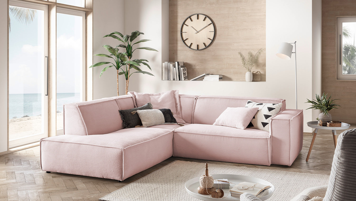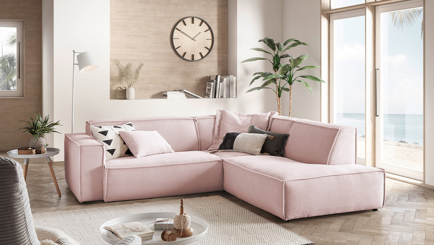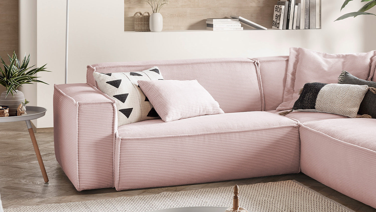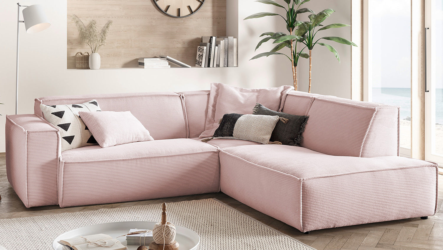 KAWOLA Sofa SAMU Ecksofa Cord rosa