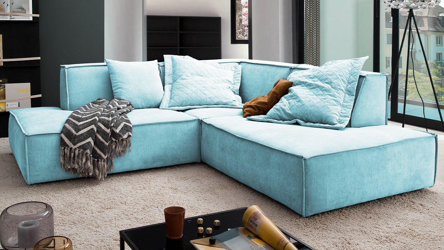Das KAWOLA Ecksofa SAMU besticht durch seinen hervorragenden Sitzkomfort, der durch den äußerst weichen und legeren Polsteraufbau zustande kommt und zum Verweilen und Entspannen einlädt. Die Polsterung passt sich der Körperform an; Sitzabdrücke sowie Wellenbildung der Bezüge sind warentypisch. Seine moderne und urbane Form verleihen dem Sofa sein unverwechselbares Aussehen und bieten ausreichend Platz, um gemütliche Abende zu verbringen. Mit seinem zeitlosen Design fügt es sich nahtlos in jede Umgebung ein und macht auch frei im Raum stehend eine gute Figur. Wenn Sie Ihrem Wohnzimmer einen außergewöhnlichen Anstrich verleihen wollen, ist das Sofa SAMU definitiv das Richtige für Sie!