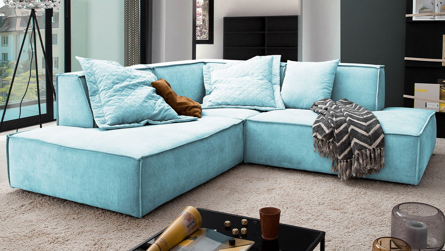 KAWOLA Sofa SAMU Ecksofa Stoff hellblau