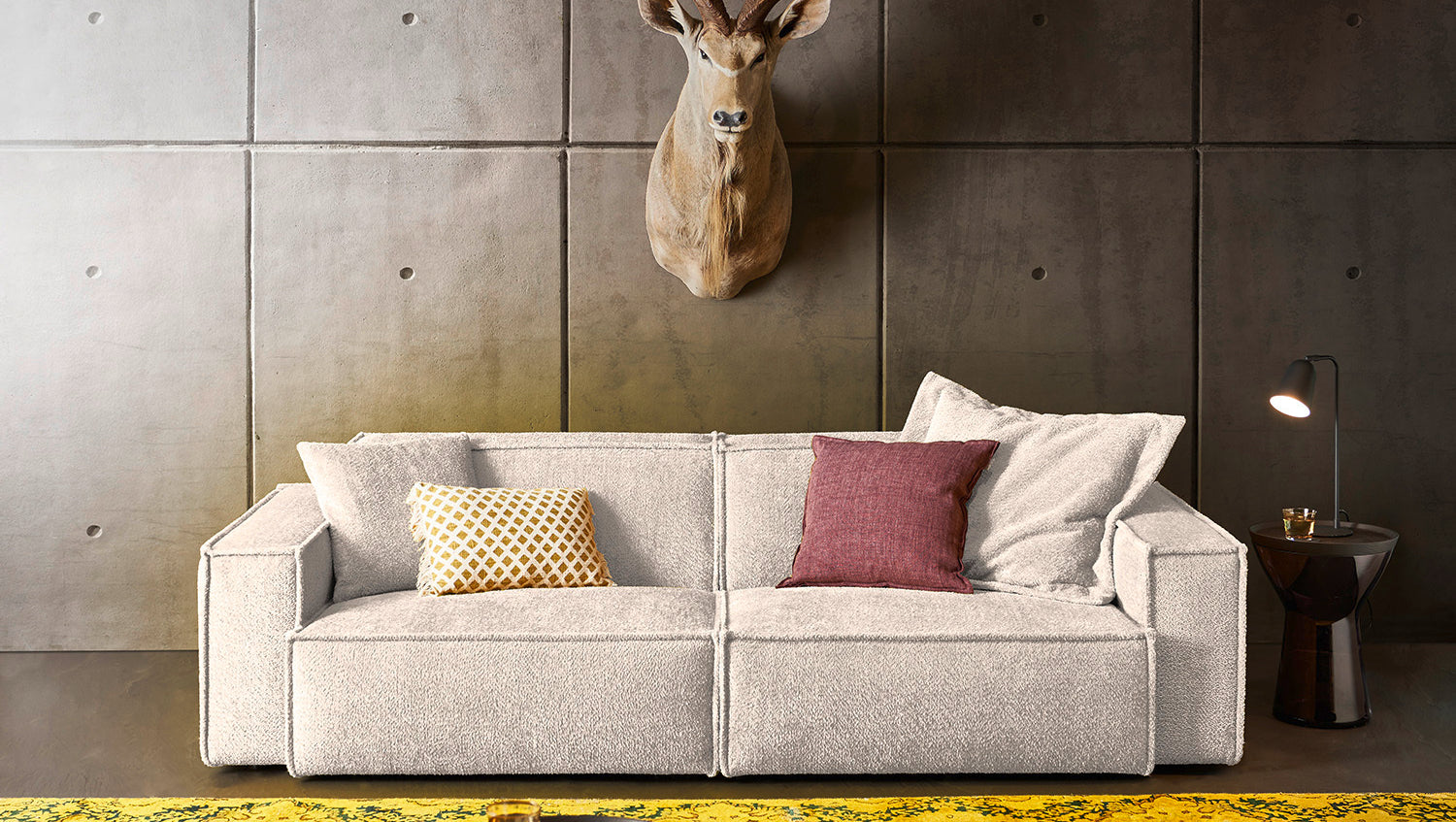 Das KAWOLA Sofa SAMU besticht durch seinen hervorragenden Sitzkomfort, der durch den äußerst weichen und legeren Polsteraufbau zustande kommt und zum Verweilen und Entspannen einlädt. Die Polsterung passt sich der Körperform an; Sitzabdrücke sowie Wellenbildung der Bezüge sind warentypisch. Der angenehm weiche Bezug erinnert sowohl optisch als auch haptisch an Schafswolle und sorgt für flauschiges Sitzvergnügen. Seine moderne und urbane Form verleihen dem Sofa sein unverwechselbares Aussehen und bieten ausreichend Platz, um gemütliche Abende zu verbringen. Mit seinem zeitlosen Design fügt es sich nahtlos in jede Umgebung ein und macht auch frei im Raum stehend eine gute Figur. Wenn Sie Ihrem Wohnzimmer einen außergewöhnlichen Anstrich verleihen wollen, ist das Sofa SAMU definitiv das Richtige für Sie!