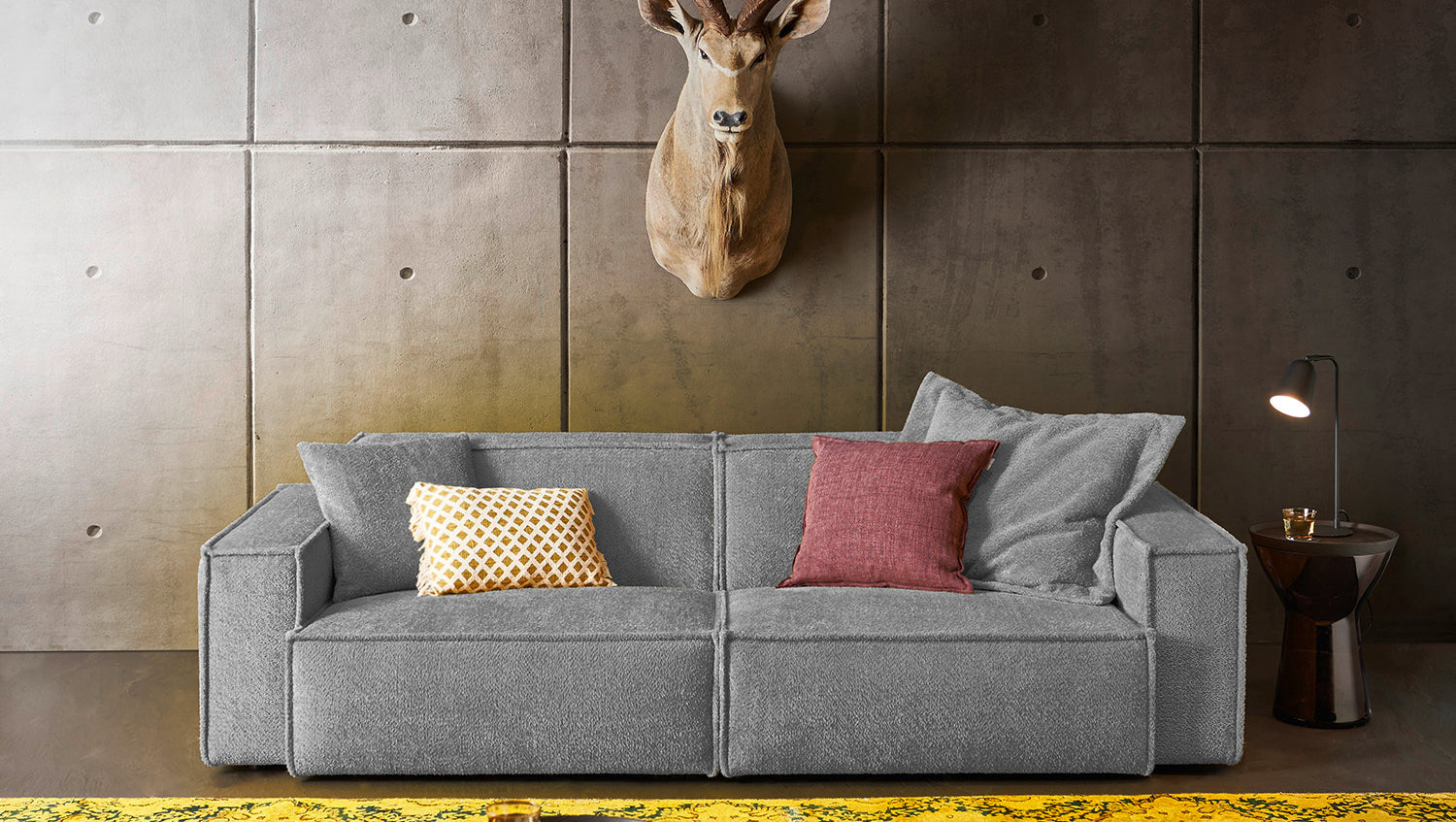 Der KAWOLA 2-Sitzer SAMU besticht durch seinen hervorragenden Sitzkomfort, der durch den äußerst weichen und legeren Polsteraufbau zustande kommt und zum Verweilen und Entspannen einlädt. Die Polsterung passt sich der Körperform an; Sitzabdrücke sowie Wellenbildung der Bezüge sind warentypisch. Der angenehm weiche Bezug erinnert sowohl optisch als auch haptisch an Schafswolle und sorgt für flauschiges Sitzvergnügen. Seine moderne und urbane Form verleihen dem Sofa sein unverwechselbares Aussehen und bieten ausreichend Platz, um gemütliche Abende zu verbringen. Mit seinem zeitlosen Design fügt es sich nahtlos in jede Umgebung ein und macht auch frei im Raum stehend eine gute Figur. Wenn Sie Ihrem Wohnzimmer einen außergewöhnlichen Anstrich verleihen wollen, ist das Sofa SAMU definitiv das Richtige für Sie!