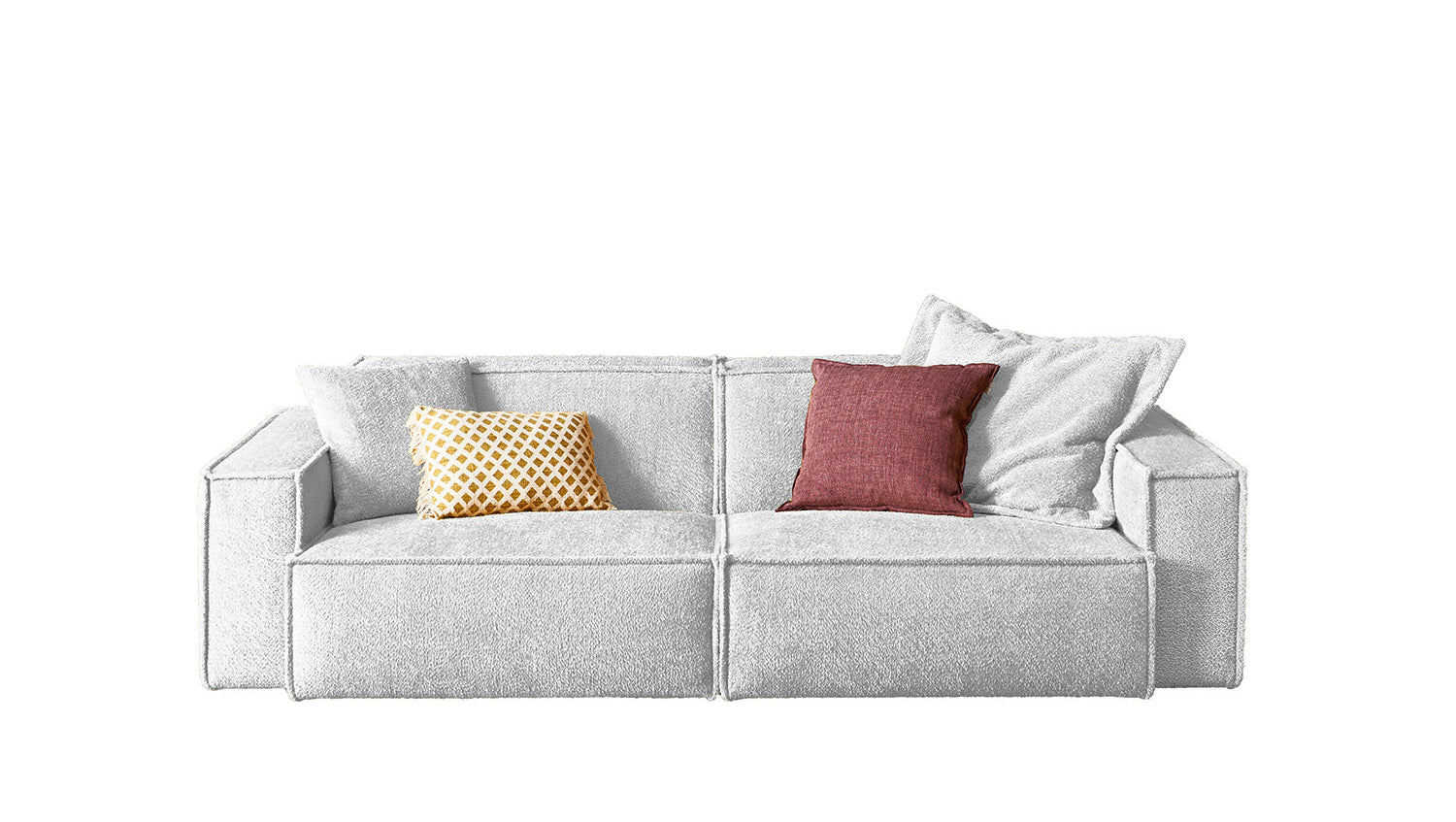 Das KAWOLA Sofa SAMU besticht durch seinen hervorragenden Sitzkomfort, der durch den äußerst weichen und legeren Polsteraufbau zustande kommt und zum Verweilen und Entspannen einlädt. Die Polsterung passt sich der Körperform an; Sitzabdrücke sowie Wellenbildung der Bezüge sind warentypisch. Der angenehm weiche Bezug erinnert sowohl optisch als auch haptisch an Schafswolle und sorgt für flauschiges Sitzvergnügen. Seine moderne und urbane Form verleihen dem Sofa sein unverwechselbares Aussehen und bieten ausreichend Platz, um gemütliche Abende zu verbringen. Mit seinem zeitlosen Design fügt es sich nahtlos in jede Umgebung ein und macht auch frei im Raum stehend eine gute Figur. Wenn Sie Ihrem Wohnzimmer einen außergewöhnlichen Anstrich verleihen wollen, ist das Sofa SAMU definitiv das Richtige für Sie!
