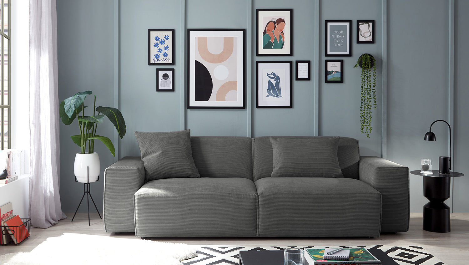 KAWOLA Sofa RANI 3-Sitzer Feincord anthrazit