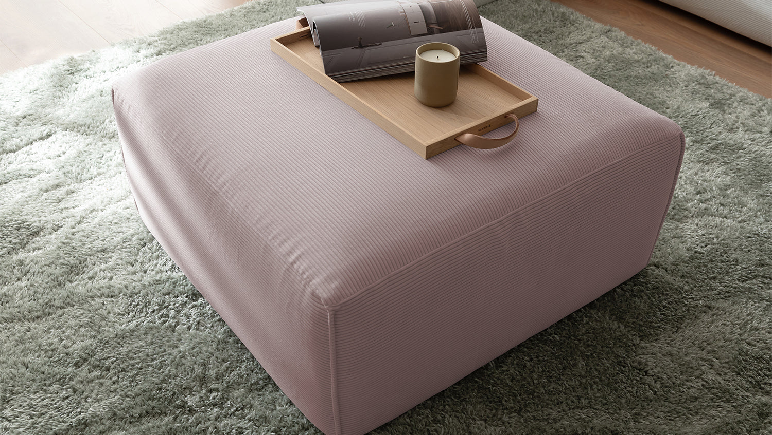 KAWOLA Hocker RANI Polsterhocker Feincord rosa