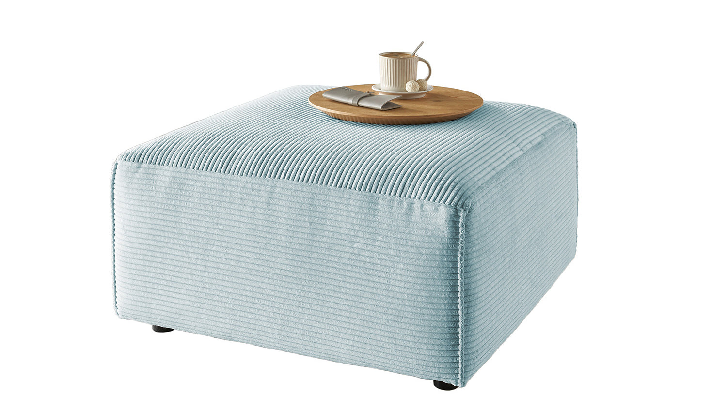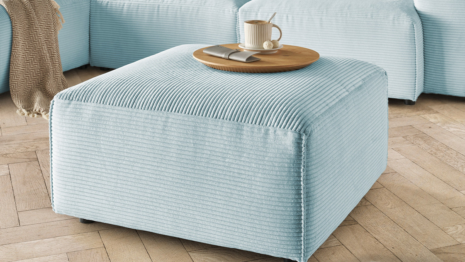 KAWOLA Hocker RANI Polsterhocker Cord hellblau