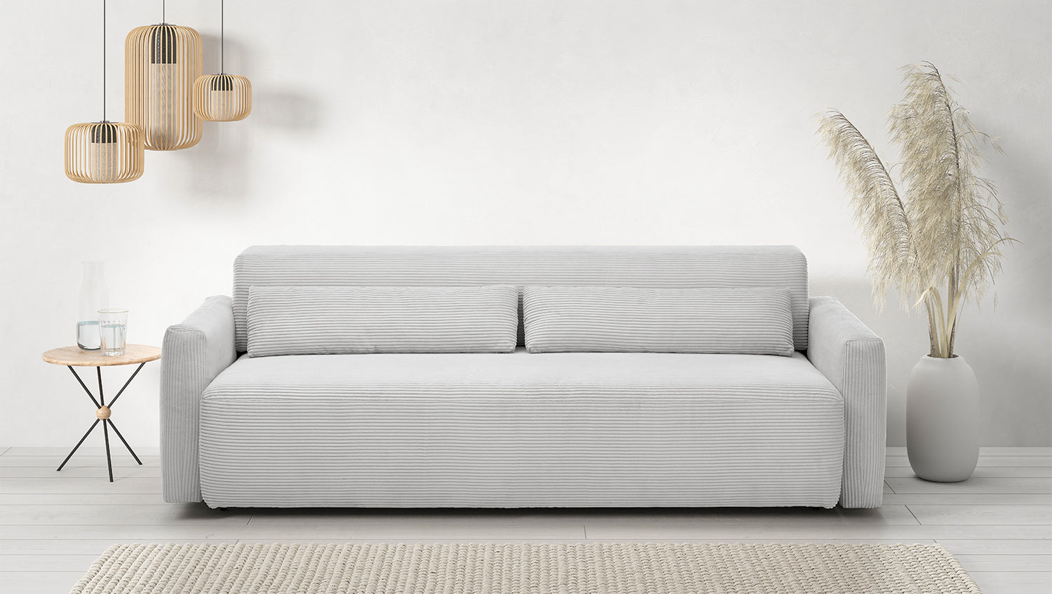KAWOLA Sofa NEO Schlafsofa Bettsofa Cord hellgrau