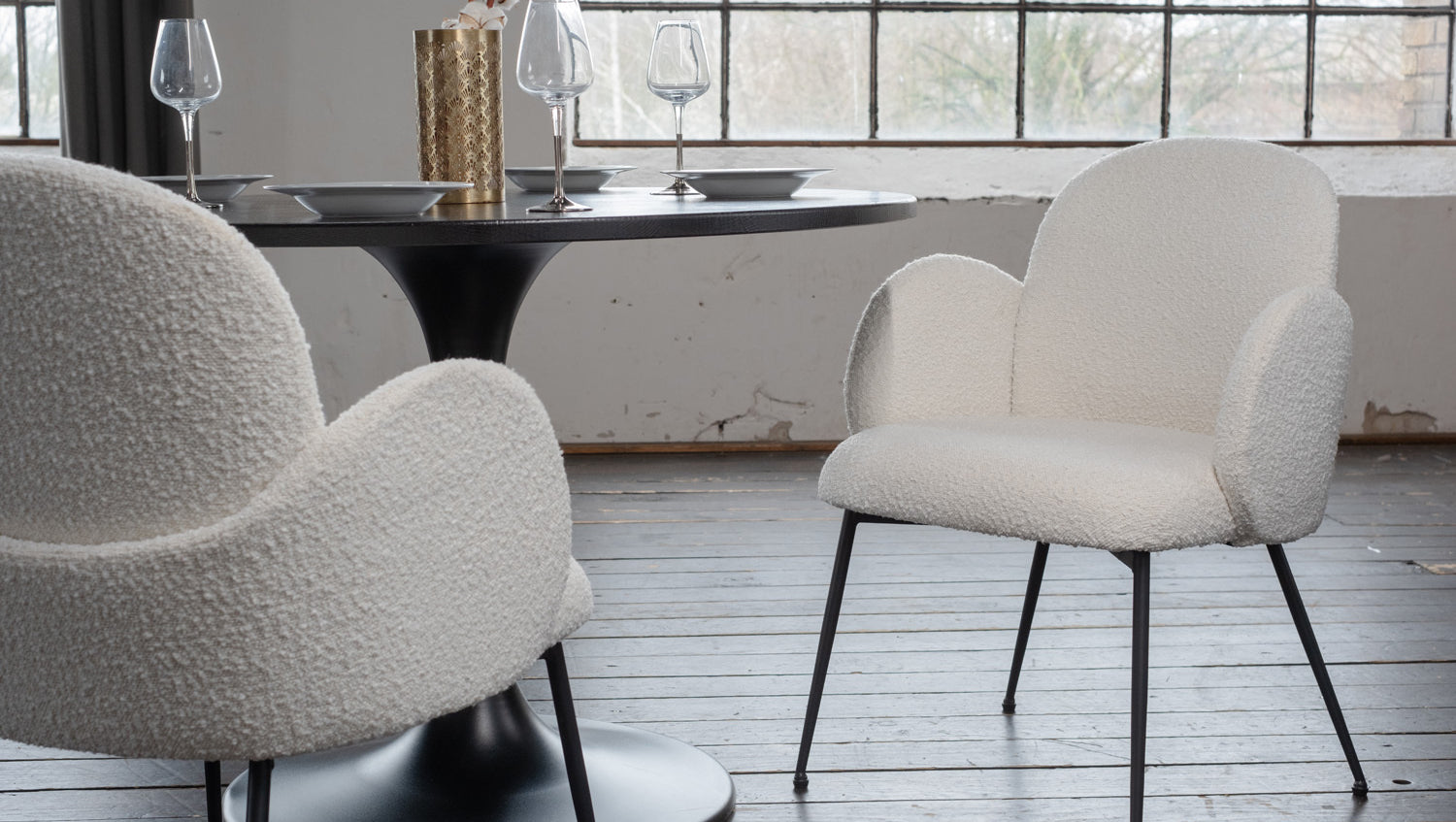 Der DEON Esszimmerstuhl von KAWOLA vereint zeitloses Design und unschlagbaren Komfort, wodurch er zum Herzstück Ihres Essbereichs wird. Der Bouclé-Bezug verleiht dem Stuhl eine besondere Anziehungskraft mit seiner gewellten Oberfläche. Großzügige Abmessungen (59 cm Breite, 62 cm Tiefe, 84 cm Höhe) ermöglichen eine perfekte Integration in verschiedene Raumgrößen. Die ergonomische Sitzhöhe von 48 cm und die großzügige Sitztiefe von 48 cm versprechen stundenlangen Komfort.