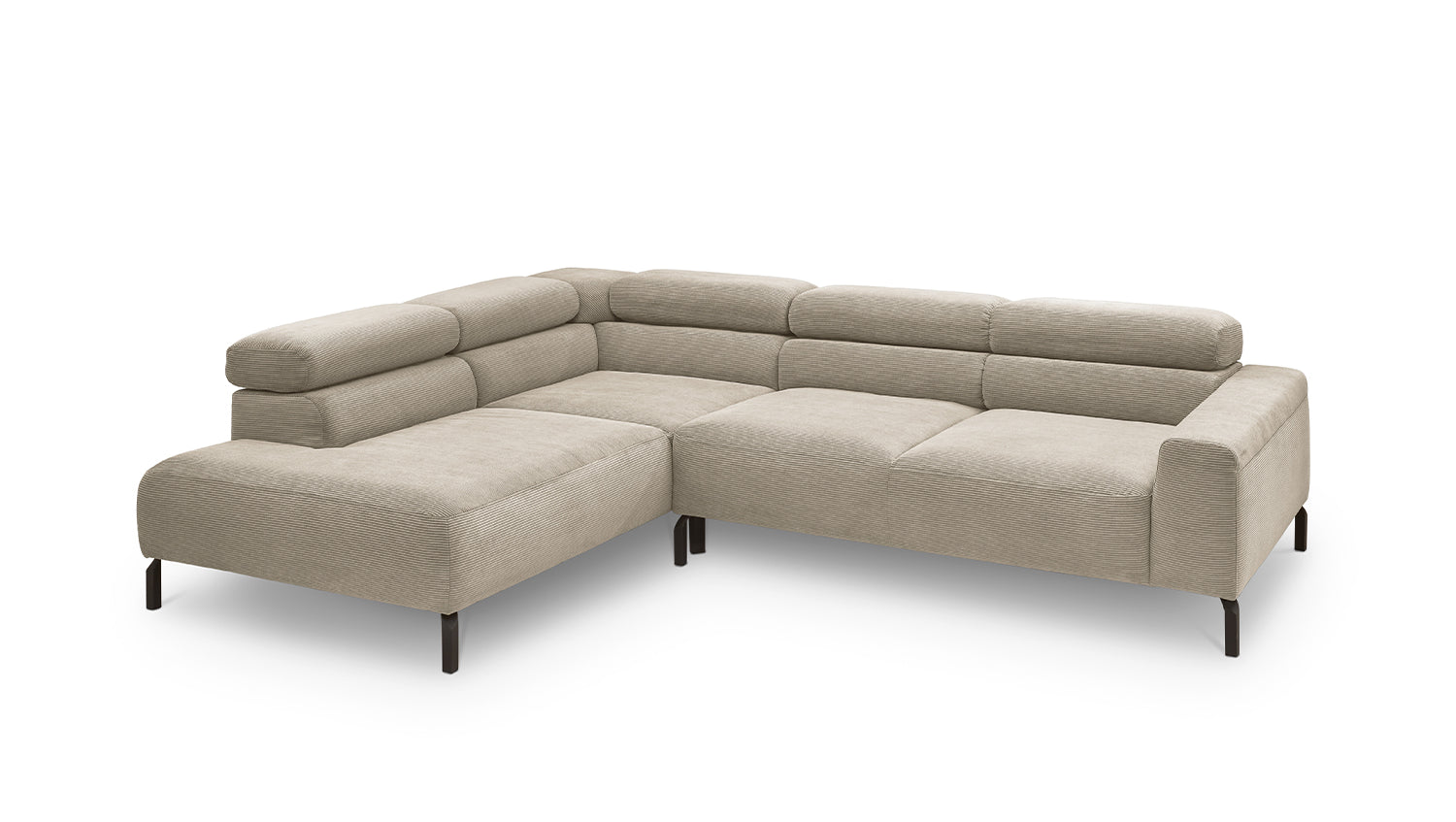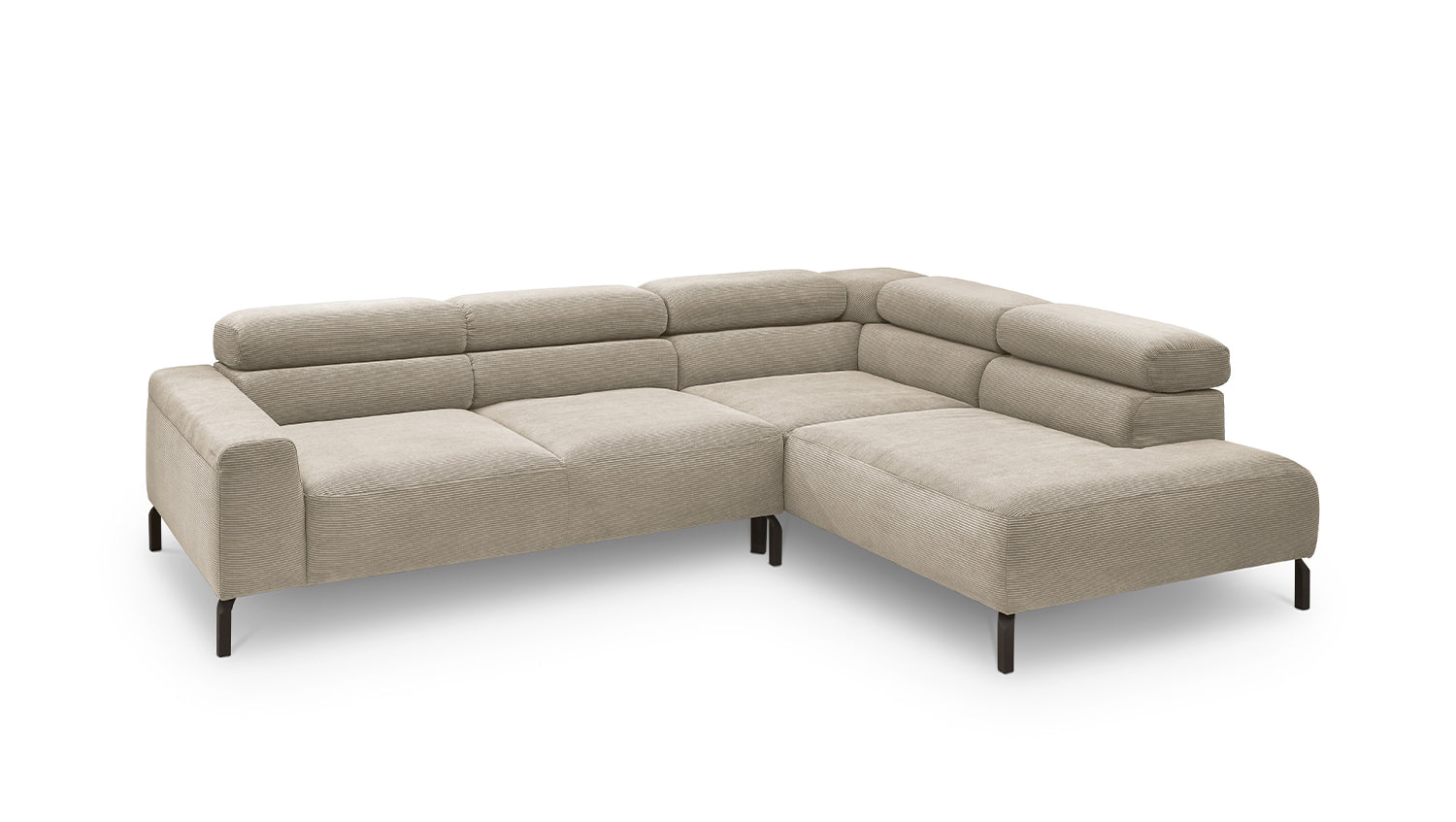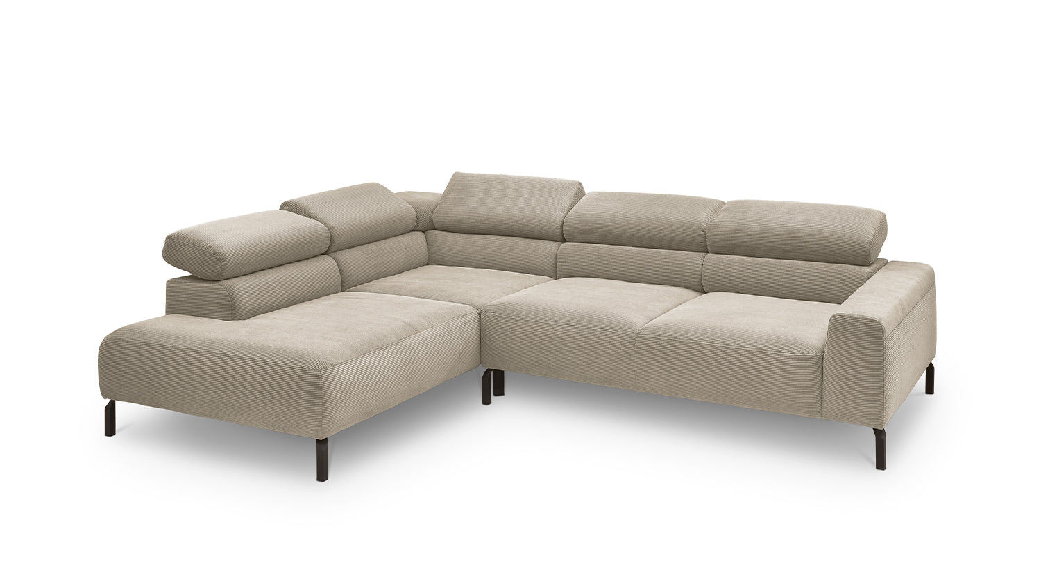 Ein Highlight ist die innovative Kopfteilverstellung, mit der Sie die Kopfteile individuell neigen oder aufrecht stellen können. Perfekt für entspannte Abende beim Lesen oder Filme schauen. Das Ecksofa DELIA vereint Funktionalität und Stil auf höchstem Niveau.