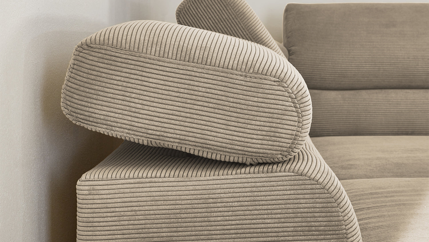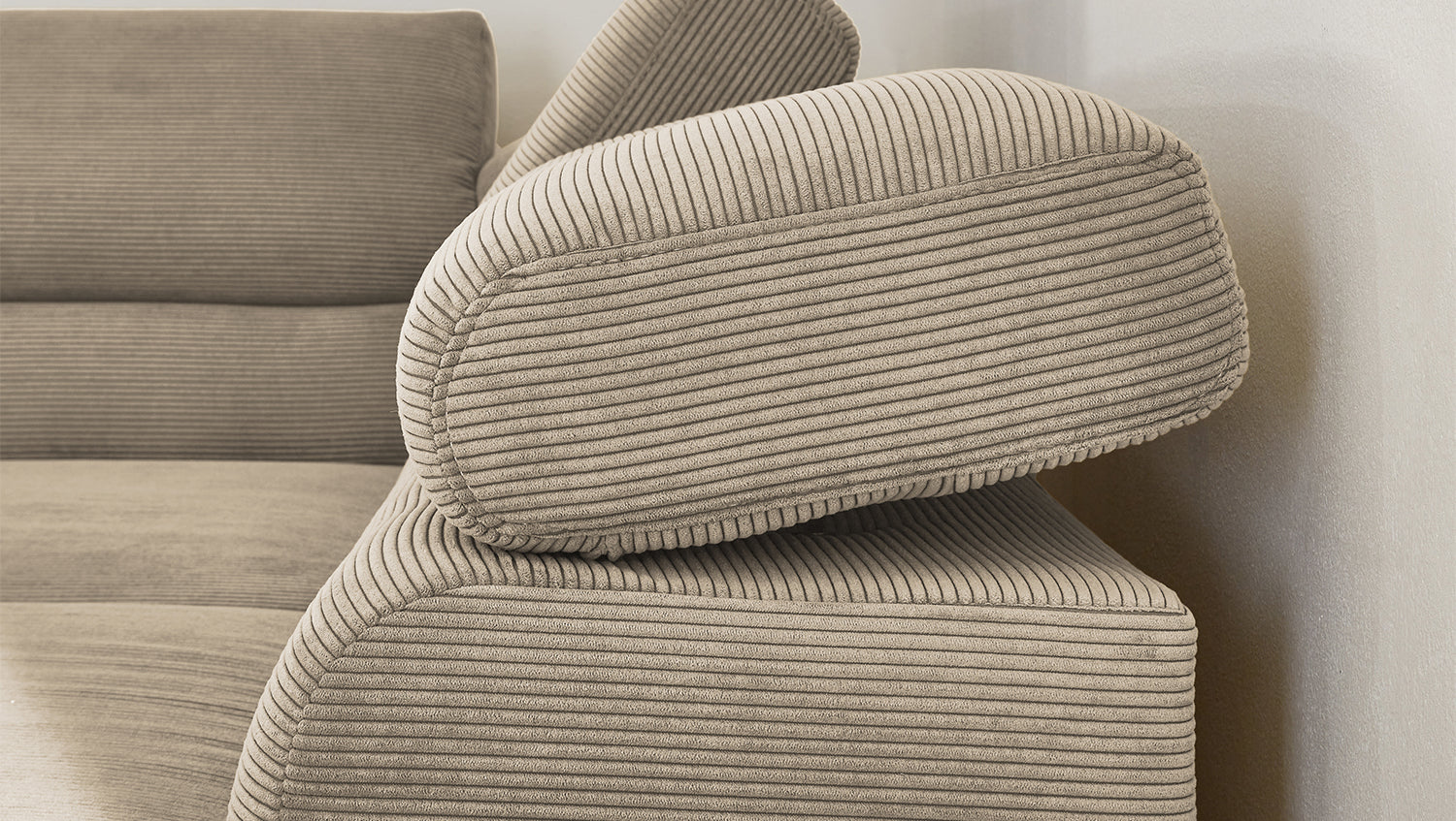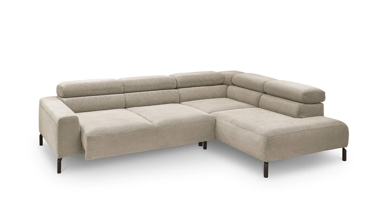 Ein Highlight ist die innovative Kopfteilverstellung, mit der Sie die Kopfteile individuell neigen oder aufrecht stellen können. Perfekt für entspannte Abende beim Lesen oder Filme schauen. Das Ecksofa DELIA vereint Funktionalität und Stil auf höchstem Niveau.
