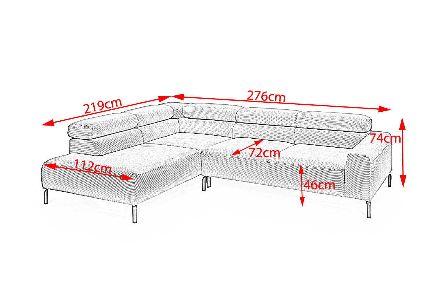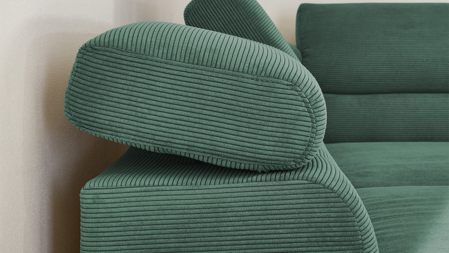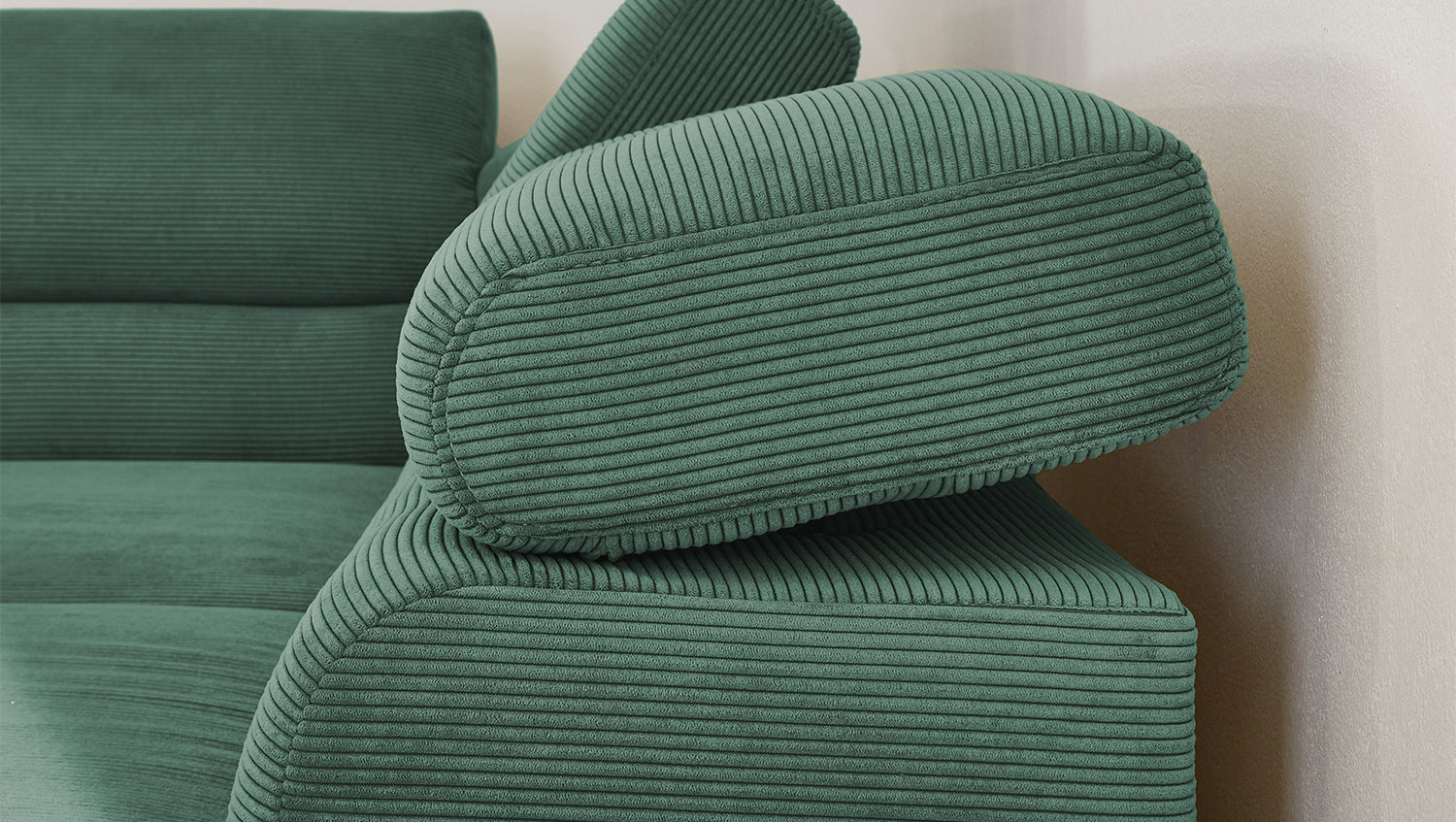 Ein Highlight ist die innovative Kopfteilverstellung, mit der Sie die Kopfteile individuell neigen oder aufrecht stellen können. Perfekt für entspannte Abende beim Lesen oder Filme schauen. Das Ecksofa DELIA vereint Funktionalität und Stil auf höchstem Niveau.