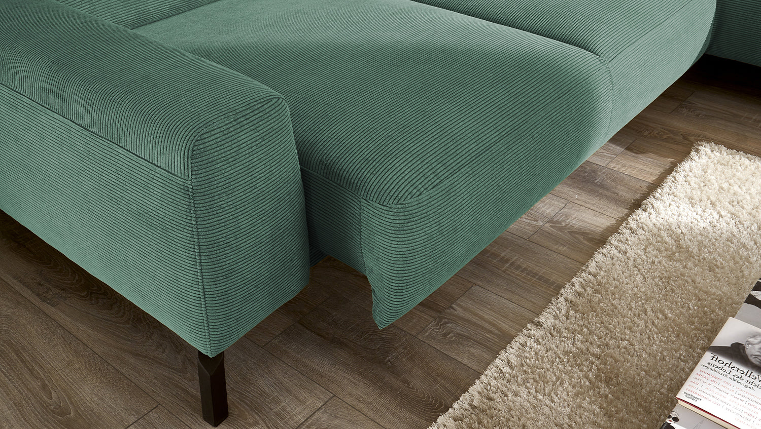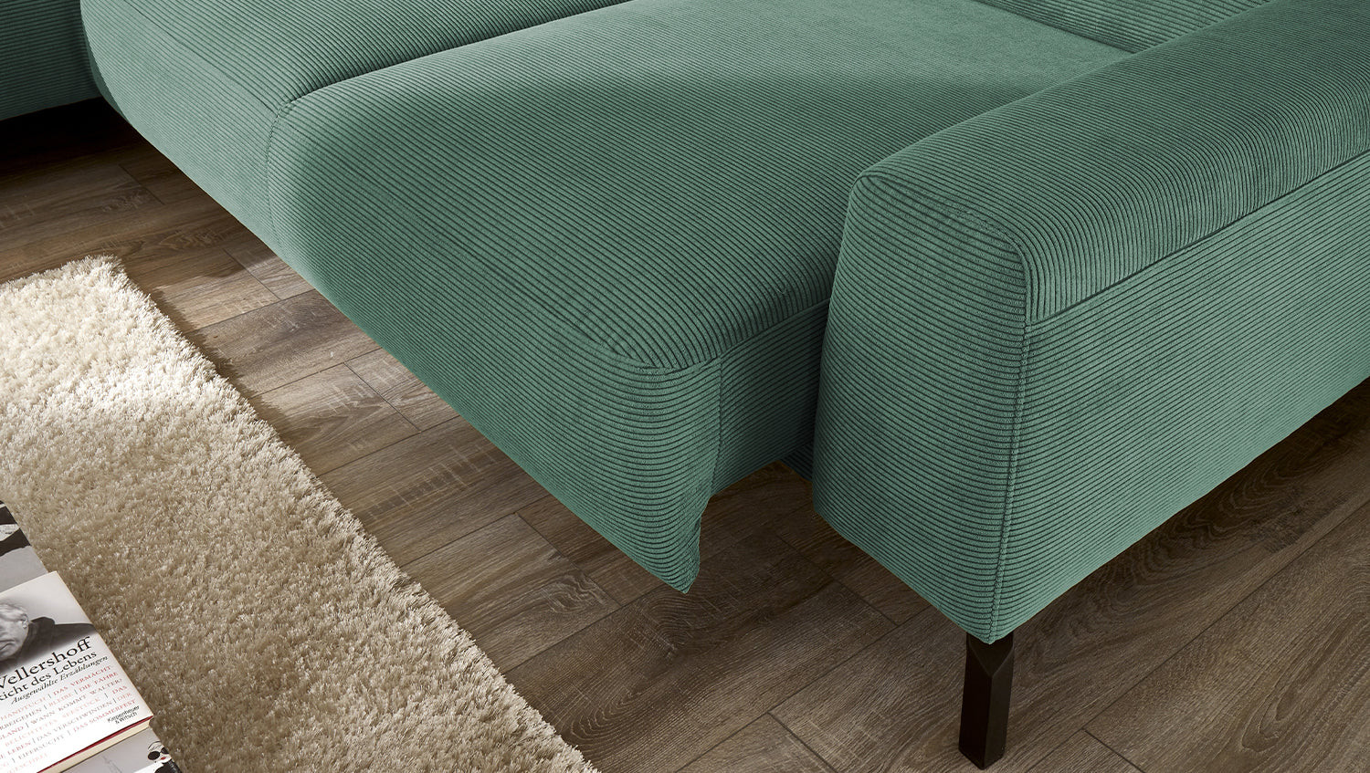 KAWOLA Sofa DELIA Ecksofa Feincord grün