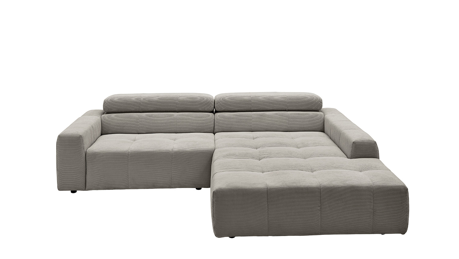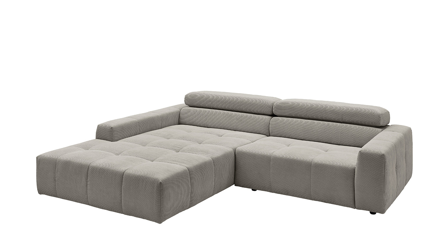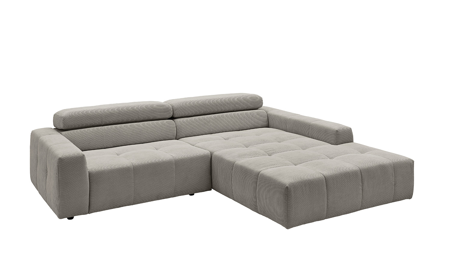 Entdecken Sie das stilvolle Ecksofa RENO von KAWOLA, das mit seinem hochwertigen Cordbezug und seiner raffinierten Kopfteilverstellung beeindruckt. Der Rundumbezug aus erstklassigem Cord verleiht diesem Ecksofa einen zeitlosen Charme und eine angenehme Haptik. Der ergonomisch geformte Rücken aus Schaumstoff sorgt für zusätzlichen Komfort, während die Wellenunterfederung und der PUR-Schaum im Sitzbereich ein angenehmes Sitzgefühl gewährleisten. Die innovative Kopfteilverstellung ermöglicht es Ihnen, die Kopfteile individuell zu neigen oder aufrecht zu stellen, um Ihre persönliche Entspannungsposition zu finden. Mit einem mittelfesten Sitzkomfort bietet das Ecksofa RENO die perfekte Kombination aus Stil und Gemütlichkeit. Erleben Sie pure Entspannung in Ihrem Wohnzimmer mit diesem bequemen und ansprechenden Möbelstück.