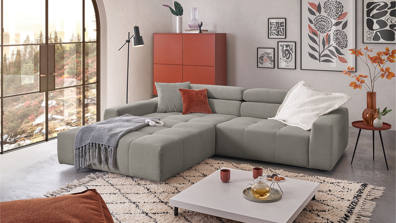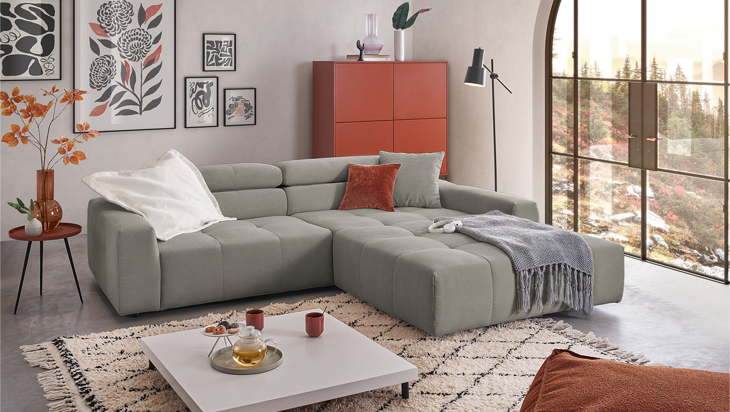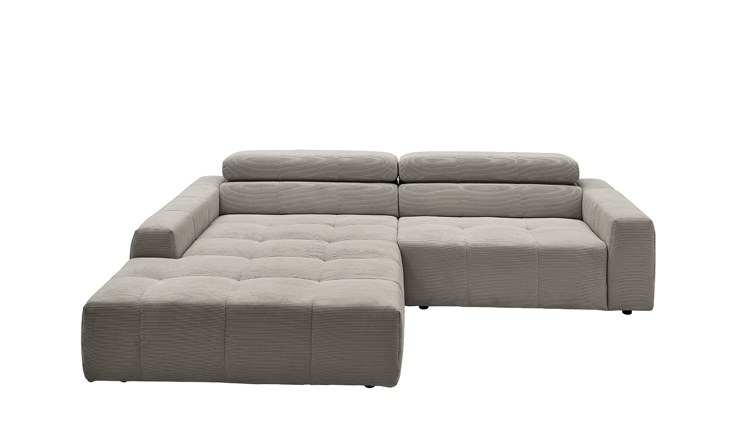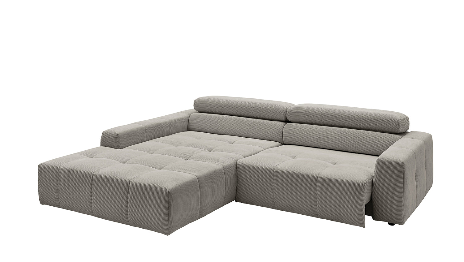 Entdecken Sie das stilvolle Ecksofa RENO von KAWOLA, das mit seinem hochwertigen Cordbezug und seiner raffinierten Kopfteilverstellung beeindruckt. Der Rundumbezug aus erstklassigem Cord verleiht diesem Ecksofa einen zeitlosen Charme und eine angenehme Haptik. Der ergonomisch geformte Rücken aus Schaumstoff sorgt für zusätzlichen Komfort, während die Wellenunterfederung und der PUR-Schaum im Sitzbereich ein angenehmes Sitzgefühl gewährleisten. Die innovative Kopfteilverstellung ermöglicht es Ihnen, die Kopfteile individuell zu neigen oder aufrecht zu stellen, um Ihre persönliche Entspannungsposition zu finden. Mit einem mittelfesten Sitzkomfort bietet das Ecksofa RENO die perfekte Kombination aus Stil und Gemütlichkeit. Erleben Sie pure Entspannung in Ihrem Wohnzimmer mit diesem bequemen und ansprechenden Möbelstück.