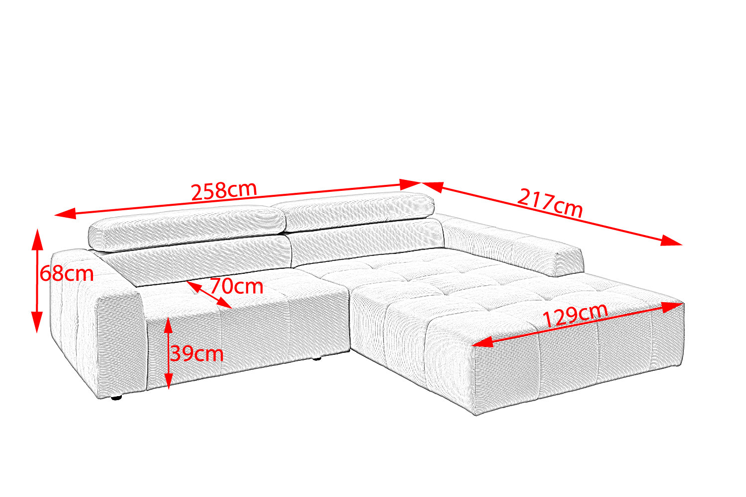 Entdecken Sie das stilvolle Ecksofa RENO von KAWOLA, das mit seinem hochwertigen Cordbezug und seiner raffinierten Kopfteilverstellung beeindruckt. Der Rundumbezug aus erstklassigem Cord verleiht diesem Ecksofa einen zeitlosen Charme und eine angenehme Haptik. Der ergonomisch geformte Rücken aus Schaumstoff sorgt für zusätzlichen Komfort, während die Wellenunterfederung und der PUR-Schaum im Sitzbereich ein angenehmes Sitzgefühl gewährleisten. Die innovative Kopfteilverstellung ermöglicht es Ihnen, die Kopfteile individuell zu neigen oder aufrecht zu stellen, um Ihre persönliche Entspannungsposition zu finden. Mit einem mittelfesten Sitzkomfort bietet das Ecksofa RENO die perfekte Kombination aus Stil und Gemütlichkeit. Erleben Sie pure Entspannung in Ihrem Wohnzimmer mit diesem bequemen und ansprechenden Möbelstück.