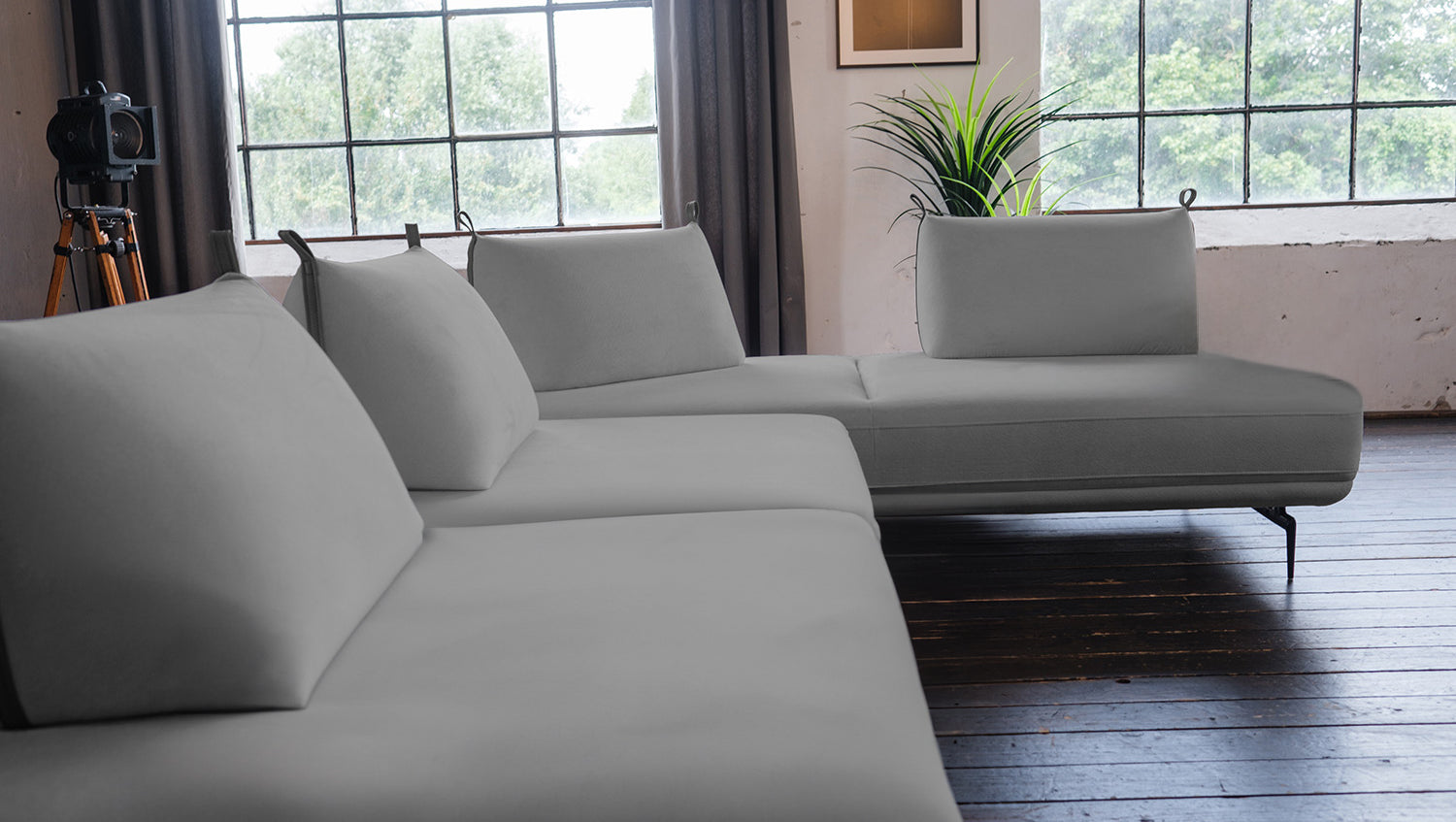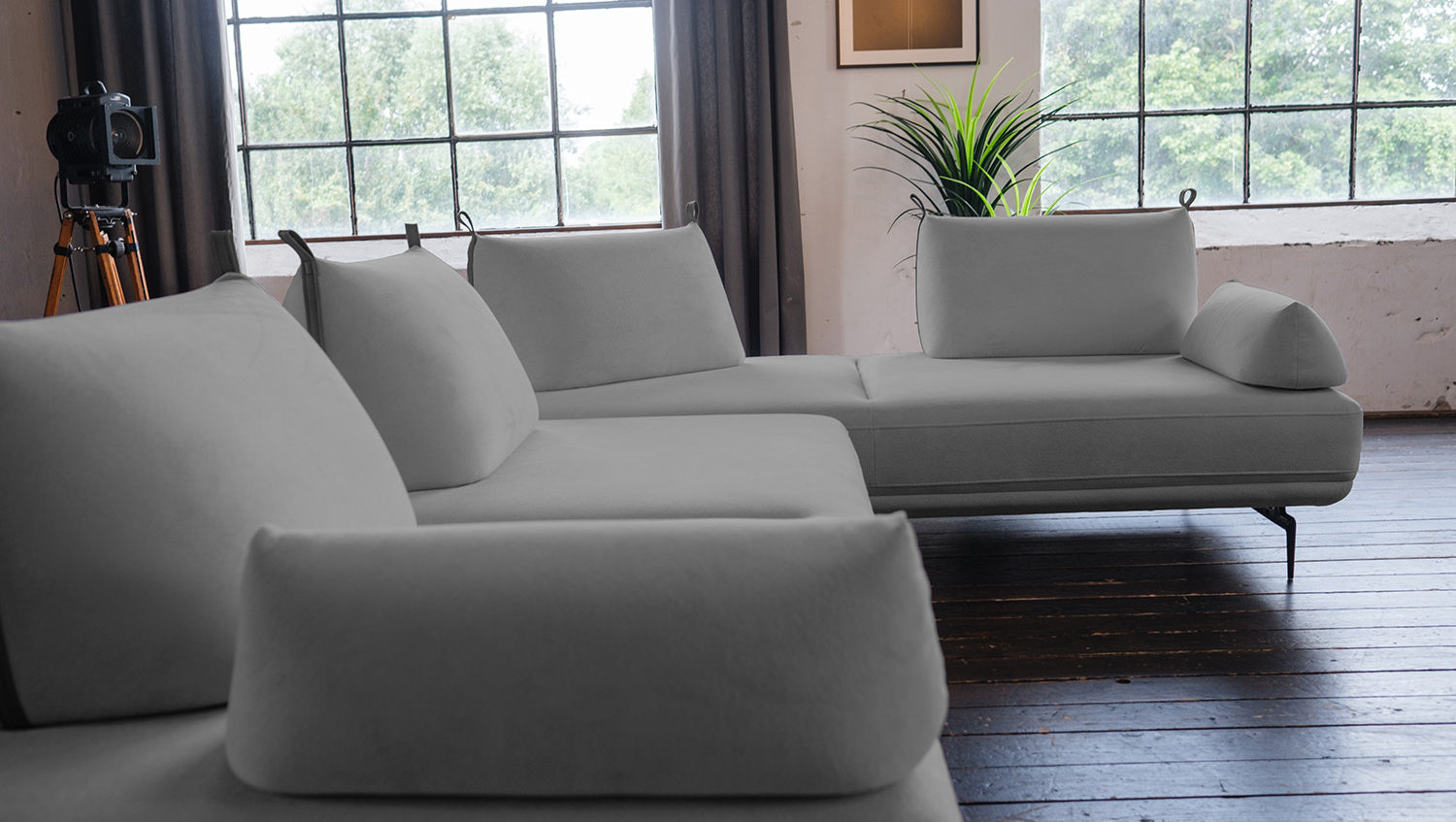 Vier flexible Rückenkissen fungieren als Rückenlehnen und können nach Belieben positioniert werden, um individuellen Komfort zu bieten. Ob als Ecksofa für gesellige Abende, als Schlafsofa mit einer Liegefläche von 210x200 cm oder als zwei 2-Sitzer – dieses Sofa passt sich Ihren Bedürfnissen perfekt an.