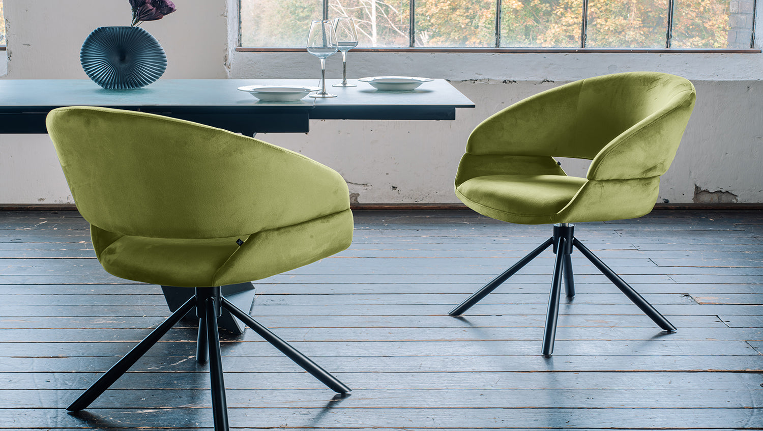KAWOLA Esszimmerstuhl LARA Drehstuhl Velvet grün