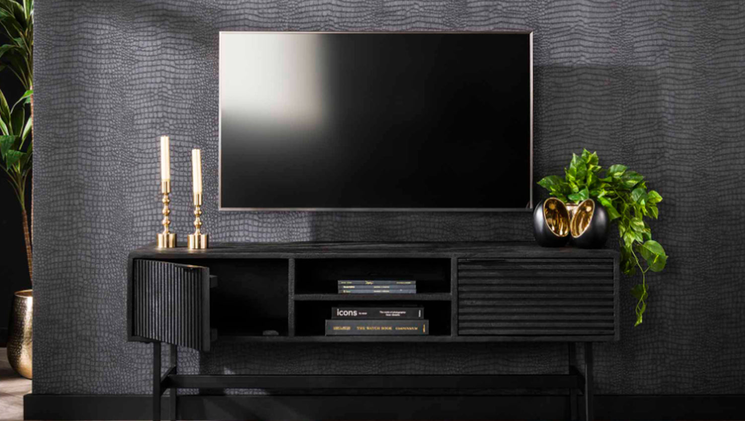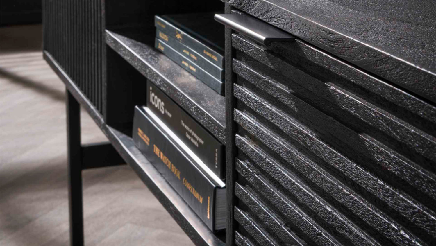 Das ELVAS Lowboard kombiniert Funktionalität mit modernem Stil und passt perfekt in minimalistische oder industrielle Wohnkonzepte. Ein eleganter Hingucker für jedes Wohnzimmer!