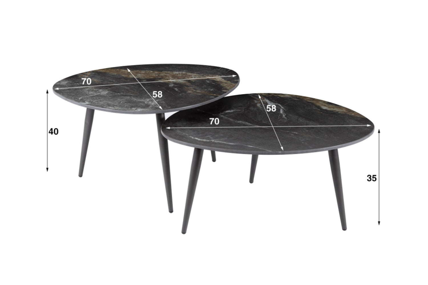 KAWOLA Couchtisch PONTE Set 2-tlg. Keramik schwarz oval
