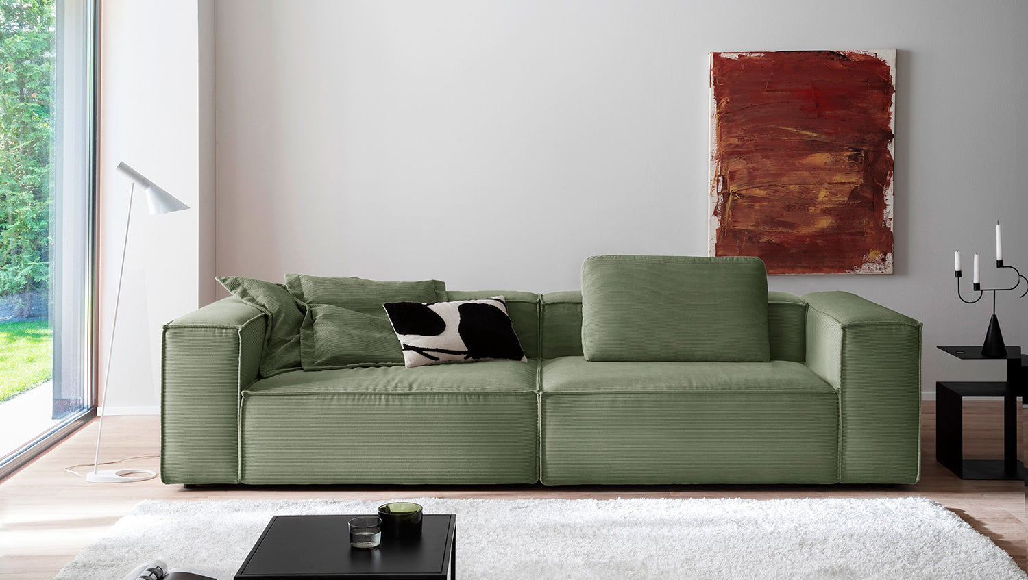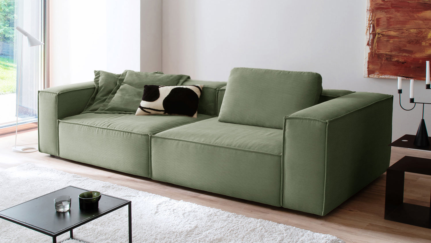 KAWOLA Sofa CARMO 3-Sitzer Feincord olivgrün