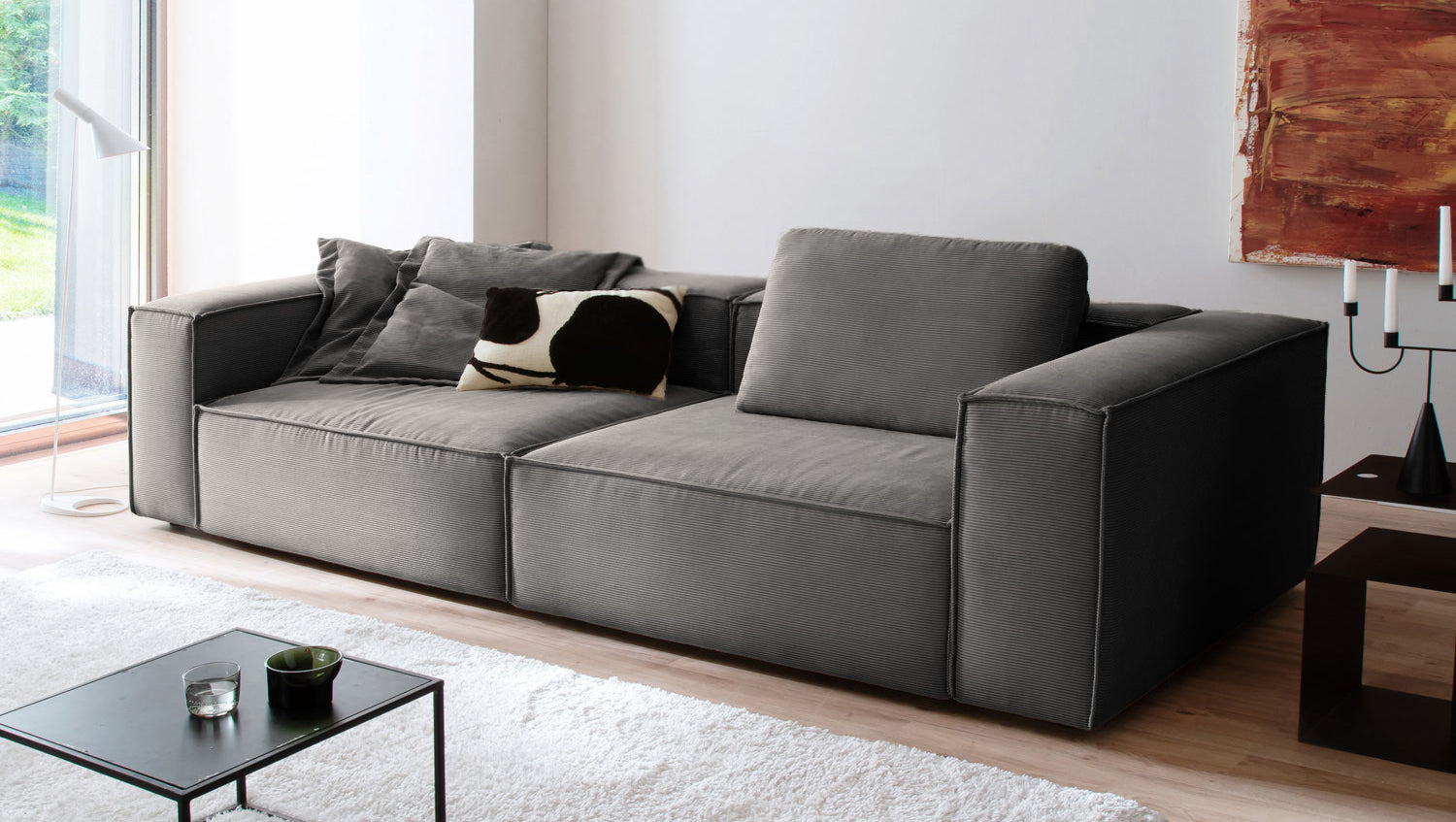 Der weiche Sitzkomfort lädt zum Entspannen ein – ob alleine oder mit Gästen. Mit einer Breite von 306 cm bietet CARMO großzügig Platz für gemütliche Stunden. Der Rundumbezug sorgt dafür, dass das Sofa frei im Raum stehen kann – ideal für moderne Wohnkonzepte.