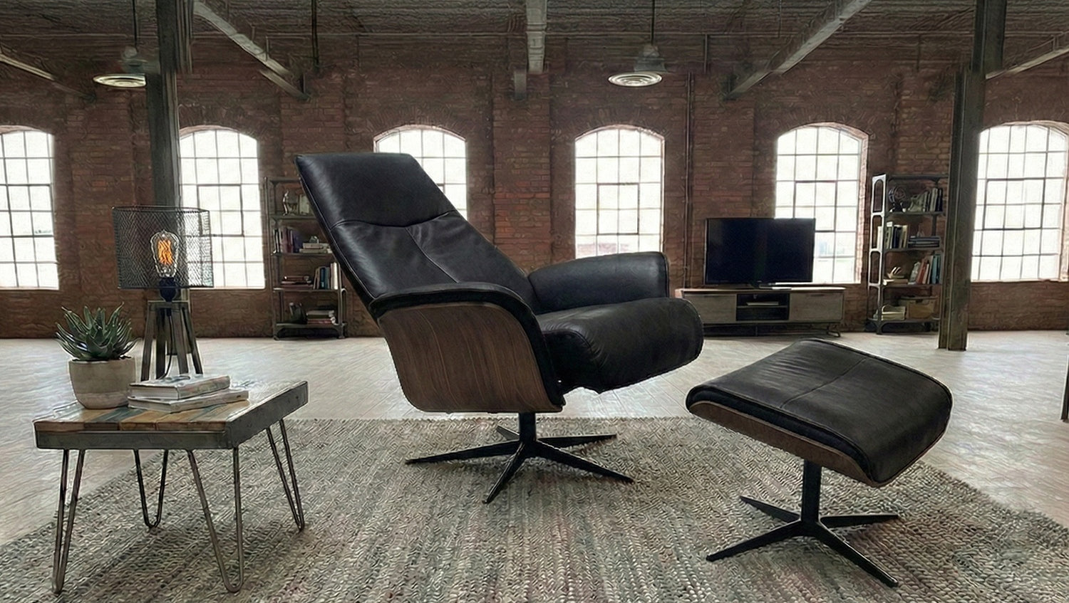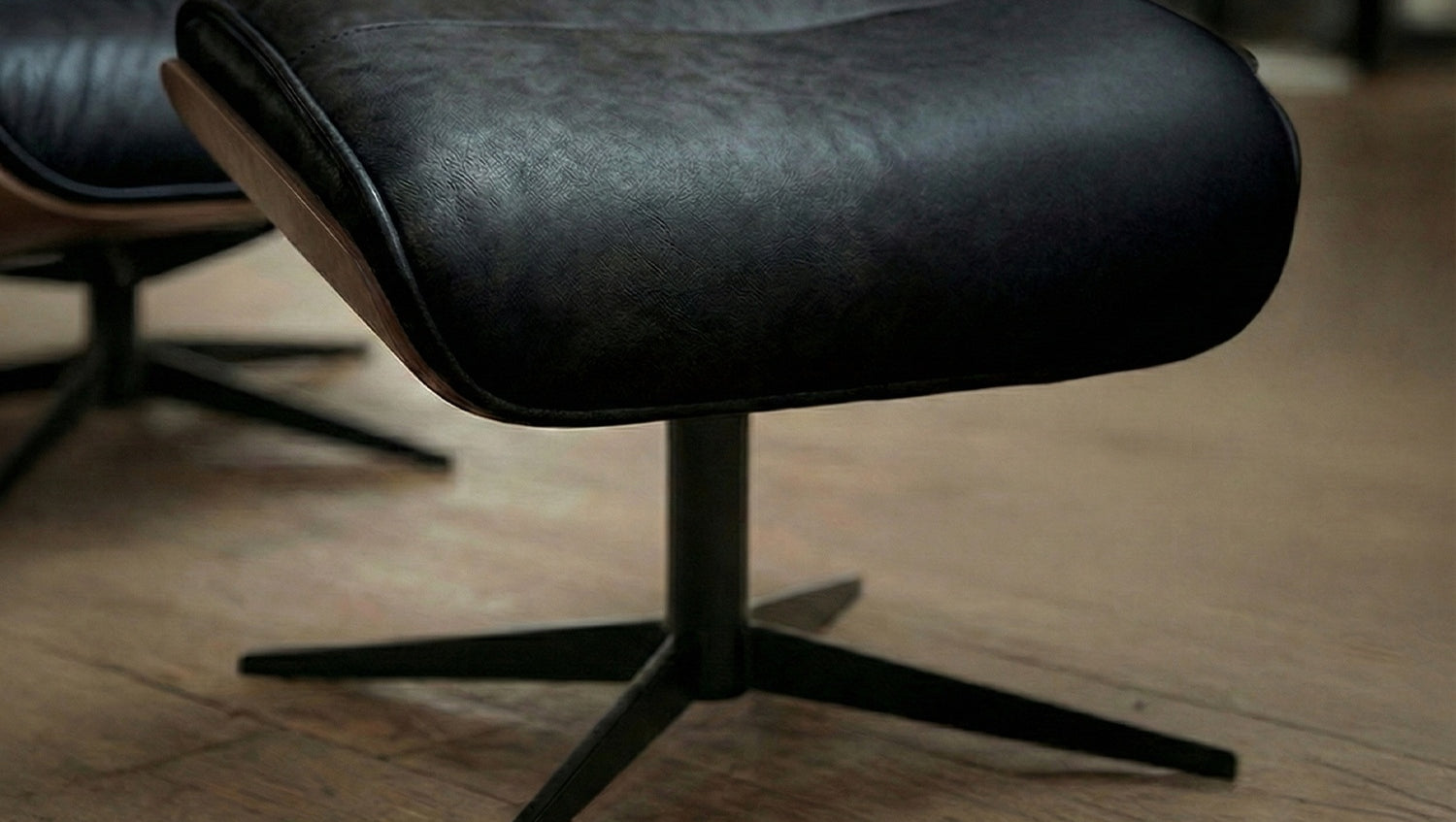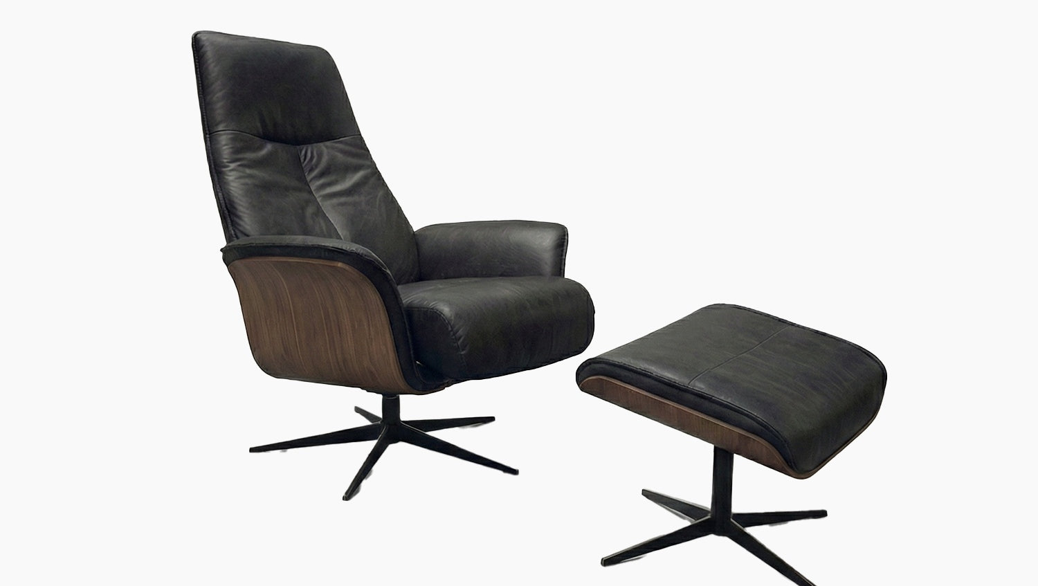 KAWOLA Relaxsessel FERREIRA Drehsessel Lederfaserstoff schwarz mit Hocker