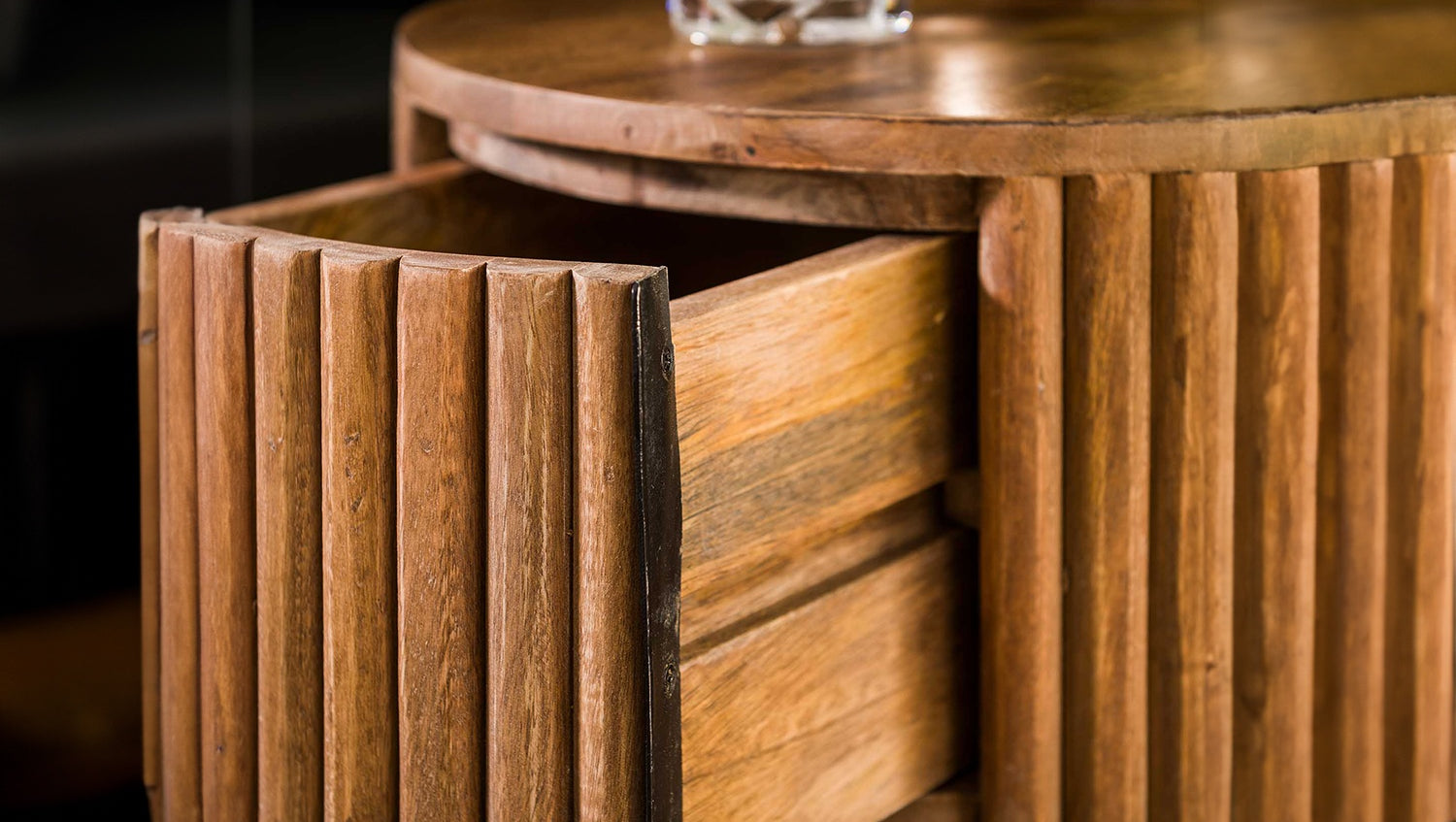 KAWOLA Nachttisch SWEAK Beistelltisch abgerundet Mangoholz massiv natur 1 Schublade