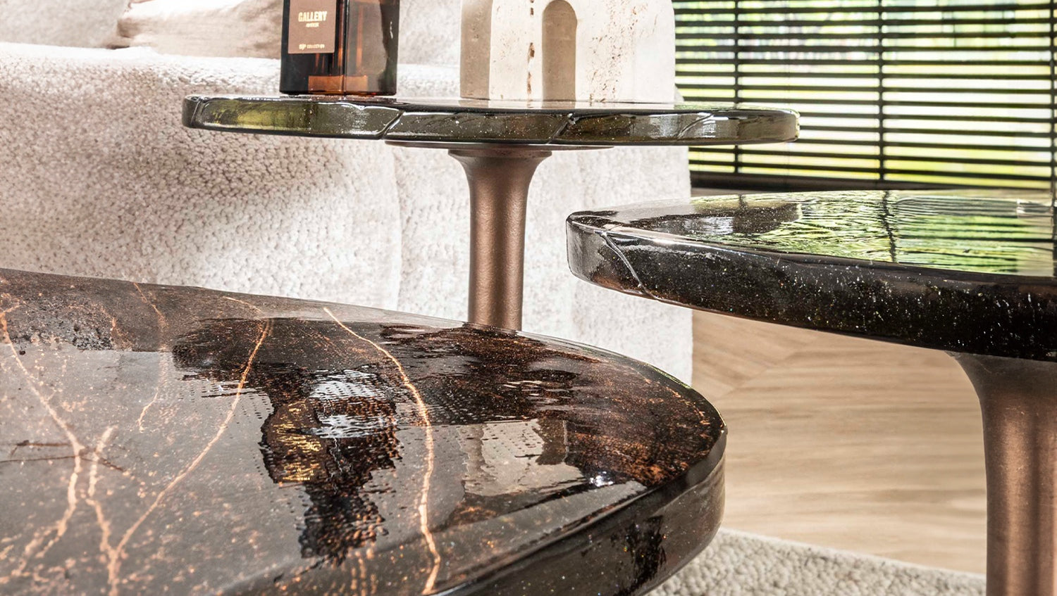 Der Beistelltisch DARI XL von KAWOLA ist ein stilvolles Wohnaccessoire, das Eleganz und Individualität in Ihr Zuhause bringt. Die runde Tischplatte besteht aus gezogenem Glas, das durch seine leicht gewellte Oberfläche und die subtilen Unregelmäßigkeiten besticht, welche für den traditionellen Herstellungsprozess charakteristisch sind. Diese besondere Glasstruktur verleiht dem Tisch eine einzigartige Optik und macht jedes Exemplar zu einem Unikat. Das filigrane, aber stabile Metallgestell ist farblich passend zur Glasplatte gestaltet und in den Varianten Antikkupfer oder Antikgold erhältlich. Der Beistelltisch DARI eignet sich hervorragend, um in Wohn- oder Lounge-Bereichen dekorative Akzente zu setzen oder kleine Alltagsgegenstände stilvoll bereitzuhalten. Dank seiner schlanken Form lässt er sich flexibel platzieren, ohne den Raum zu überladen. Ob neben dem Sofa, als Ablage für Getränke oder als dekorativer Solitär – DARI überzeugt durch seine ästhetische Wirkung und seine hohe Verarbeitungsqualität.
