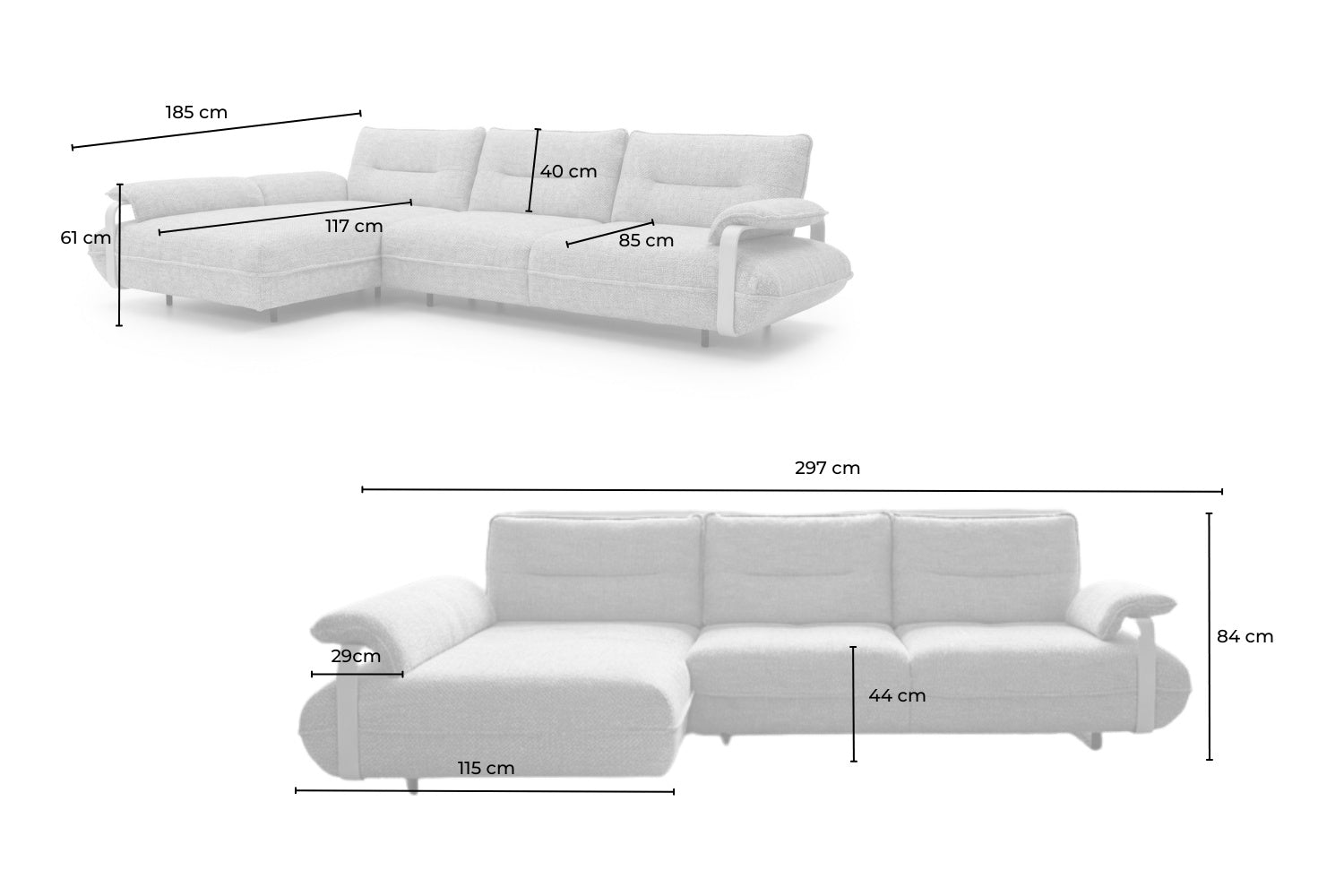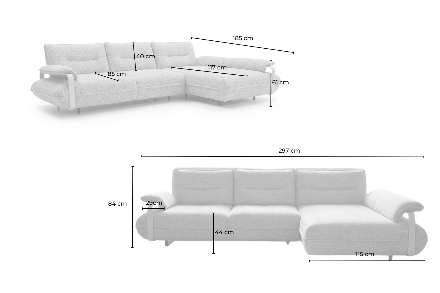 Das Ecksofa ANISSA von KAWOLA verbindet modernes Design mit durchdachtem Sitzkomfort und einer hochwertigen Verarbeitung. Mit seiner markanten Formensprache und den eleganten Metallspangen an den Armlehnen wird ANISSA schnell zum stilvollen Mittelpunkt Ihres Wohnbereichs.