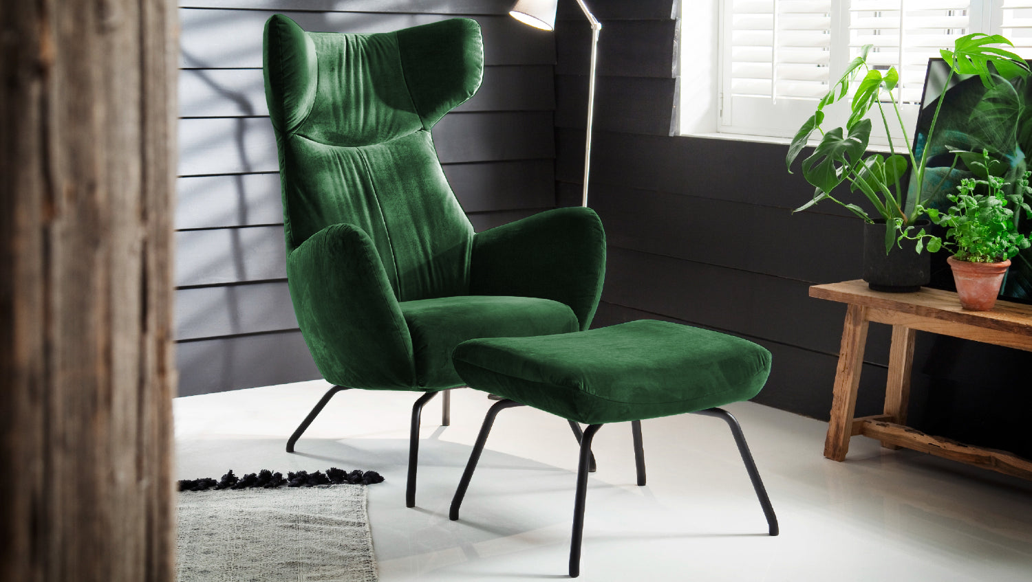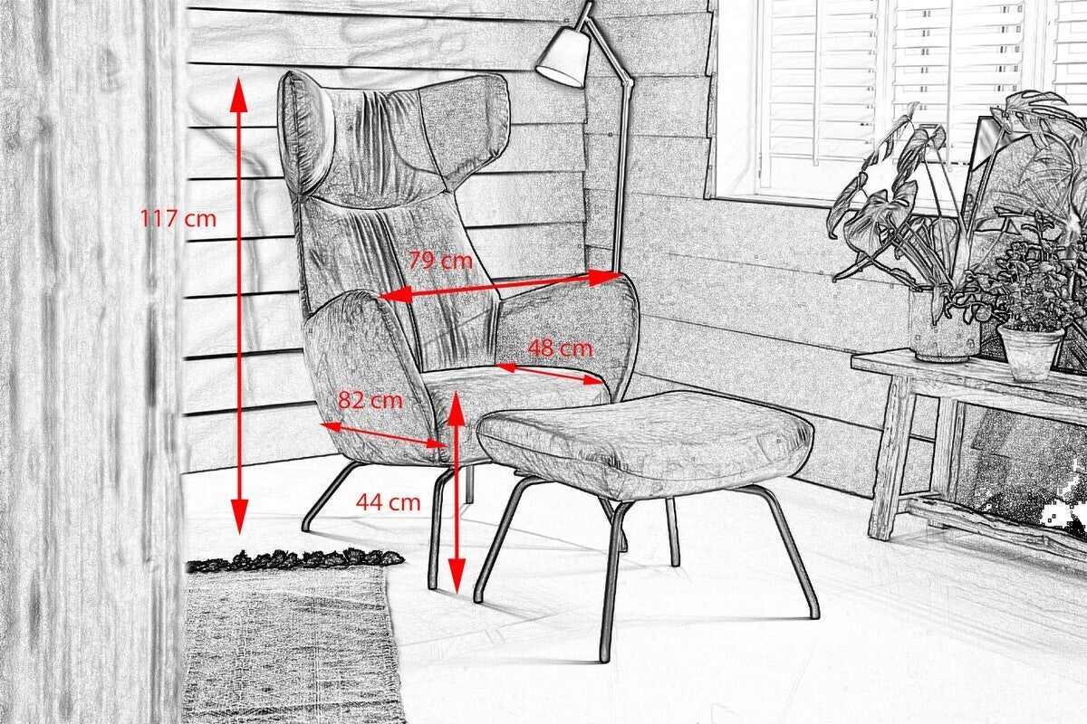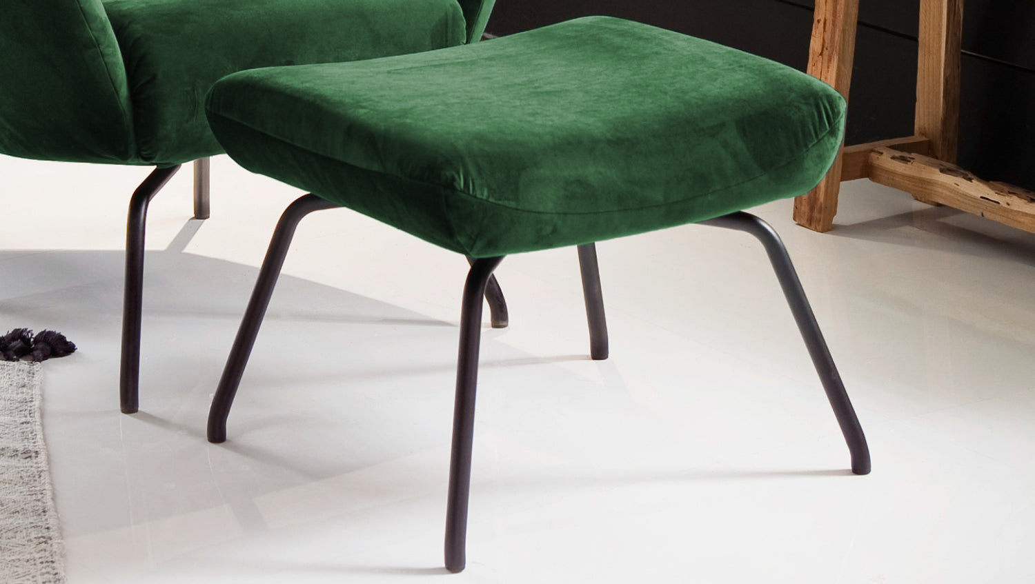 KAWOLA Sessel LOTTE Ohrensessel velvet smaragd mit Hocker