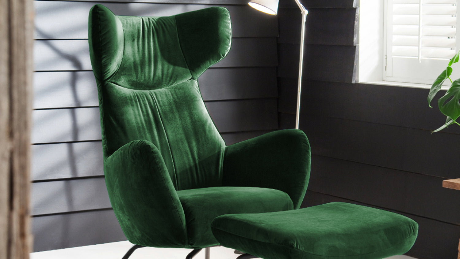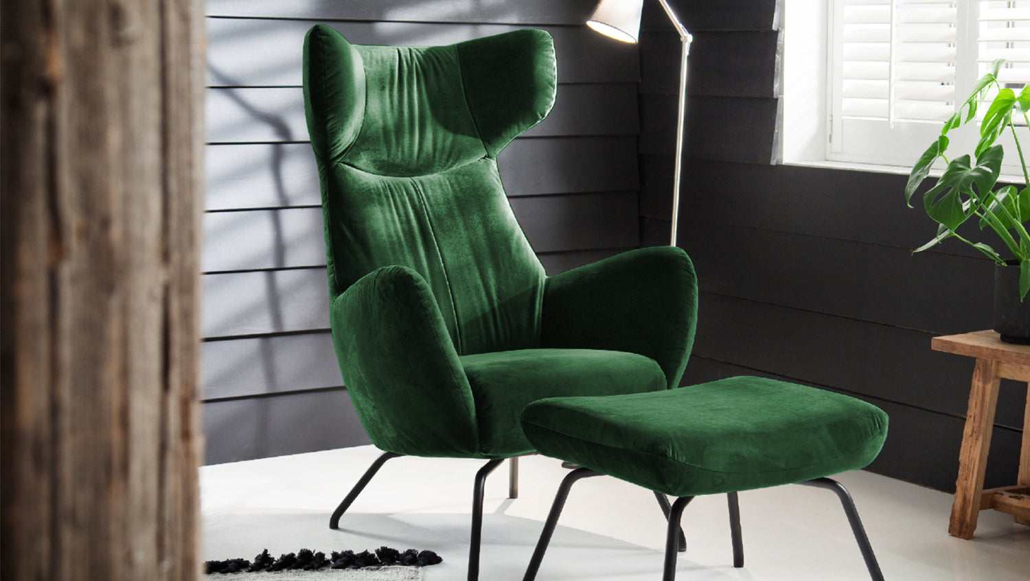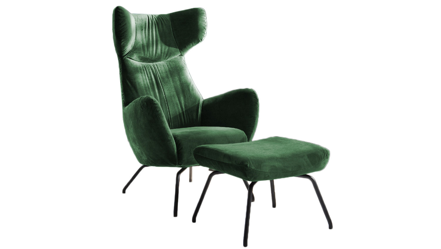 KAWOLA Sessel LOTTE Ohrensessel velvet smaragd mit Hocker