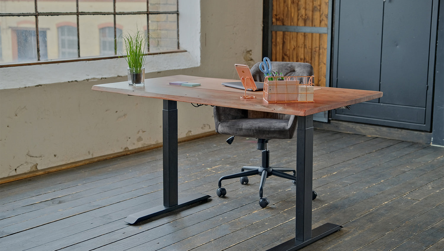 Der KAWOLA Schreibtisch LORA verbindet auf elegante Weise funktionale Modernität mit klassischem Design und fügt sich nahtlos in jedes Interieur ein. Das Aushängeschild des Tisches sind die Tischkanten, die den natürlichen Formen eines Baumes entsprechen. Das schwarze Metallgestell bildet hierzu einen gelungenen Kontrast und verleiht dem Massivholztisch LORA einen Hauch industriellen Charme. Des Weiteren kann der Tisch bequem in der Höhe verstellt werden und verfügt zusätzlich über eine schicke Monitorhalterung - für optimale Arbeitsbedingungen. Dieser Baumkantentisch ist eine echte Bereicherung für Ihr Büro und Ihr Zuhause!