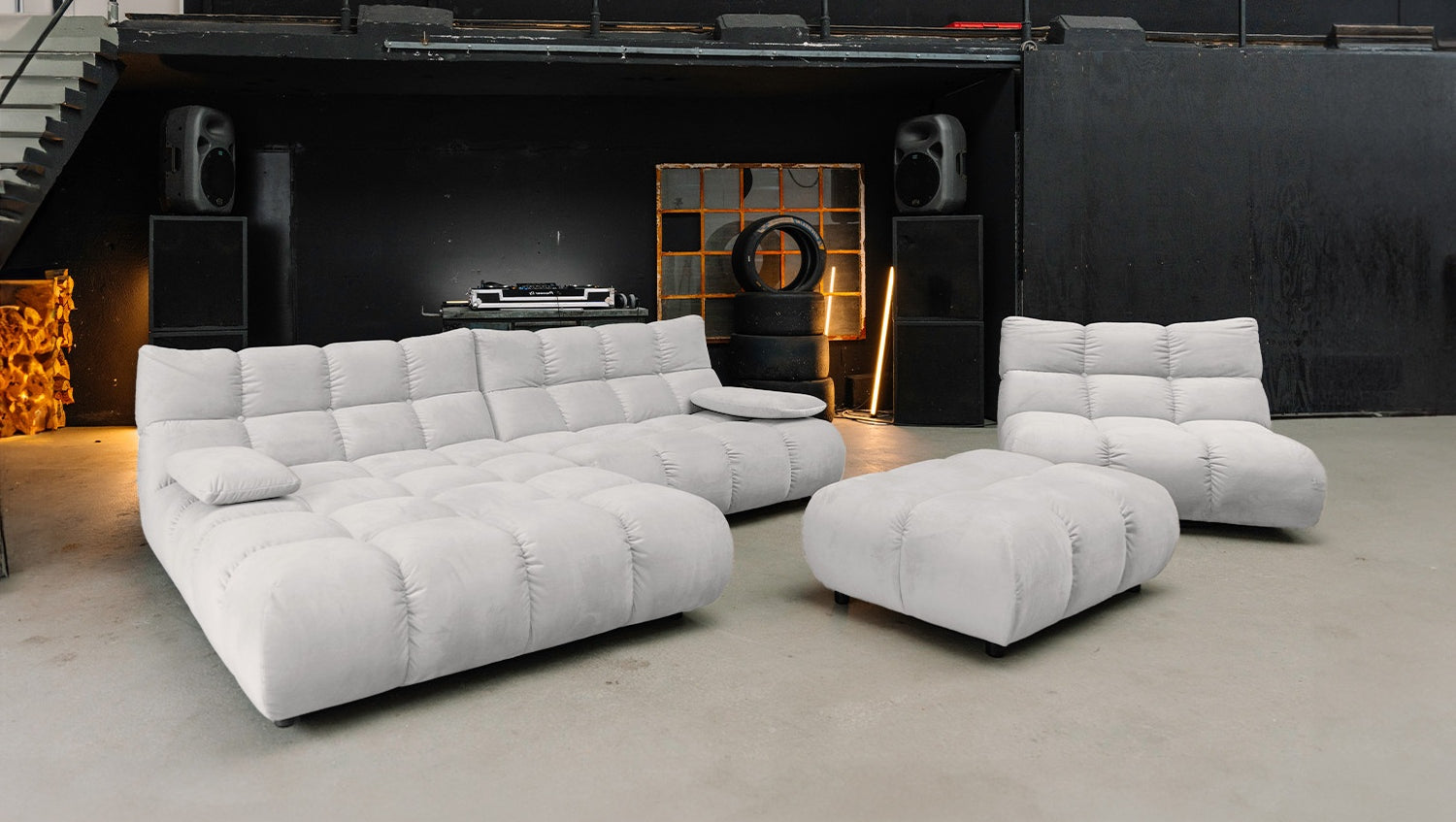 • PRAKTISCHE FUNKTIONEN – Sofa für Entspannung, Hocker als flexible Ergänzung, Drehsessel mit 360°-Funktion